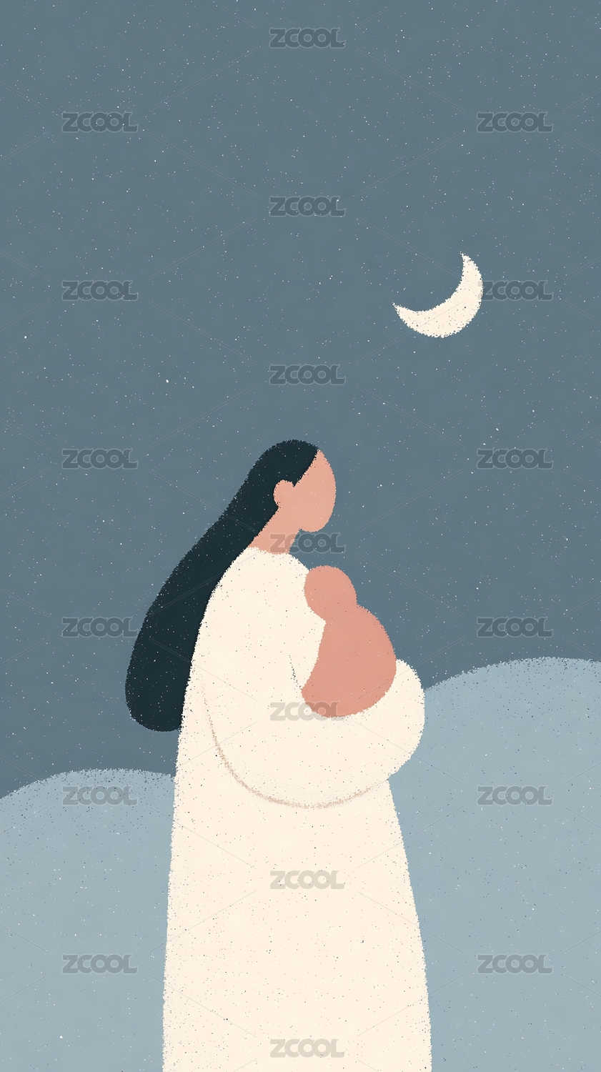 母亲怀抱婴儿夜空