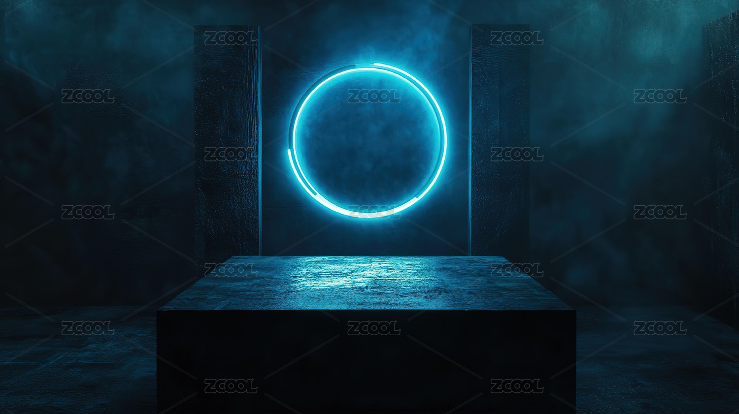 蓝色发光圆环与烟雾场景