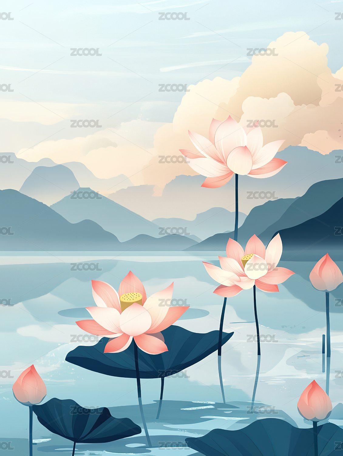 自然,插画,夏天,自然美,户外,绿色,风景,花,植物,清新