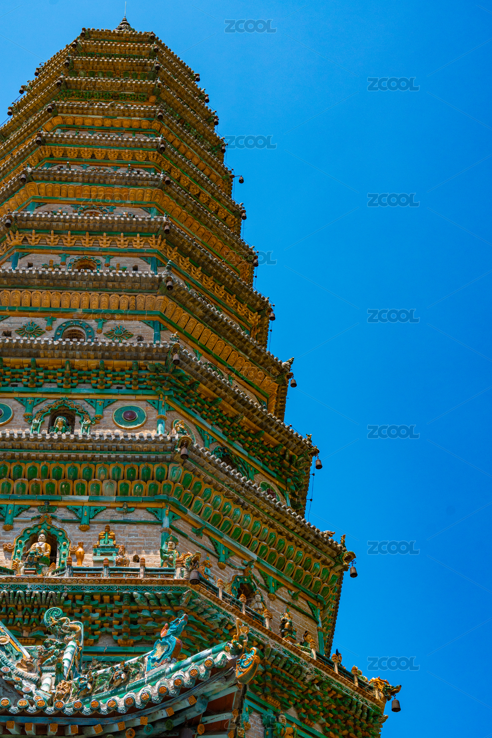 山西临汾广胜寺飞虹琉璃塔仰视,中国古建筑