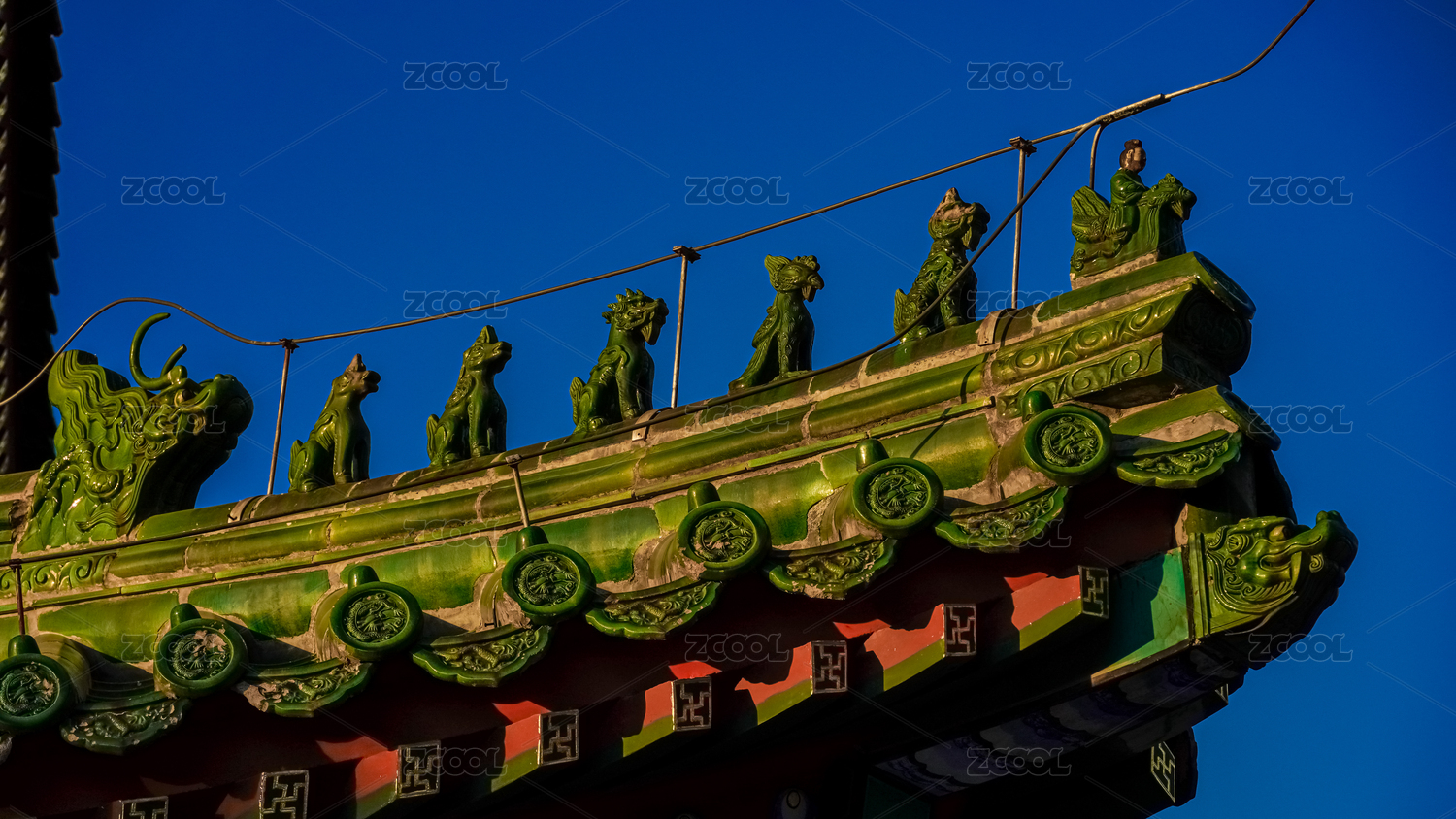 中国古典建筑屋顶神兽局部特写