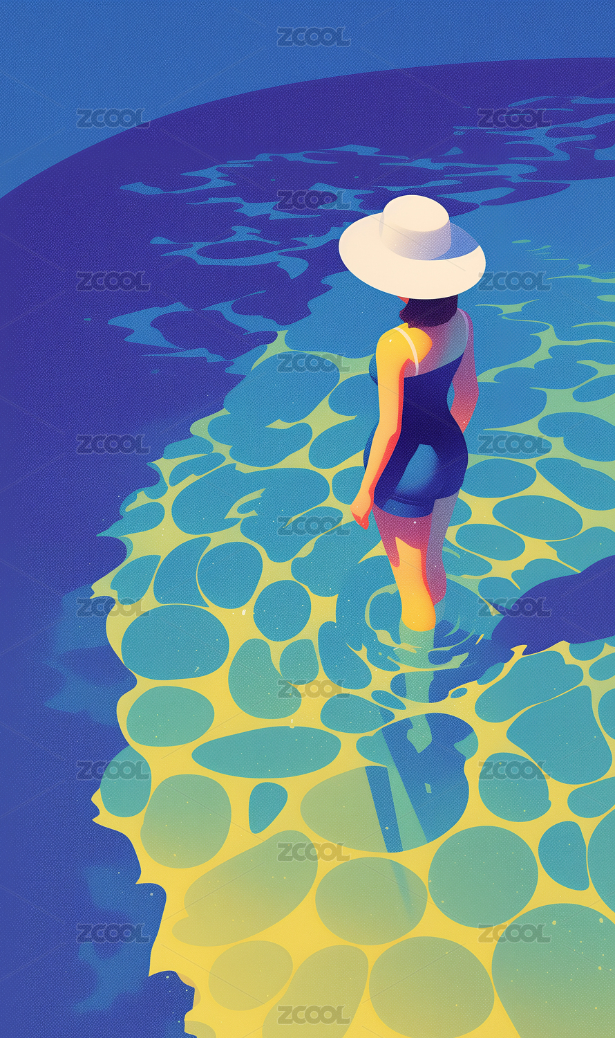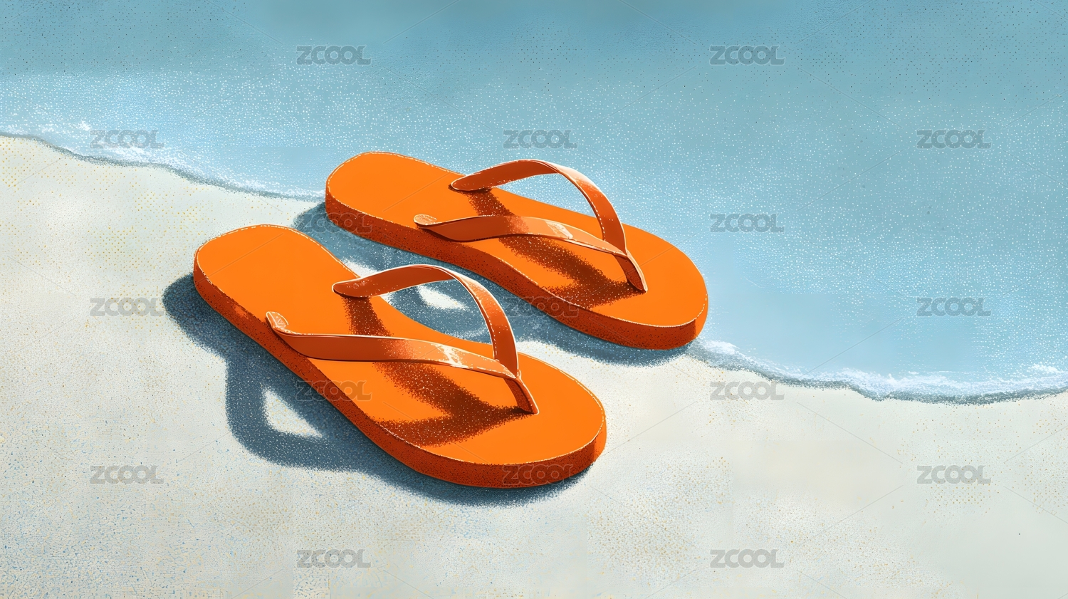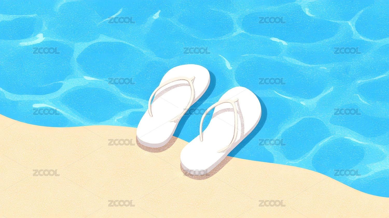 夏天,海边,脚,一双,彩色,拖鞋,波普,色块,夏季,海水