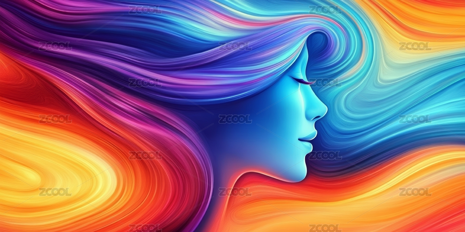 创意抽象科幻彩色颜料女性青年发光人像插画