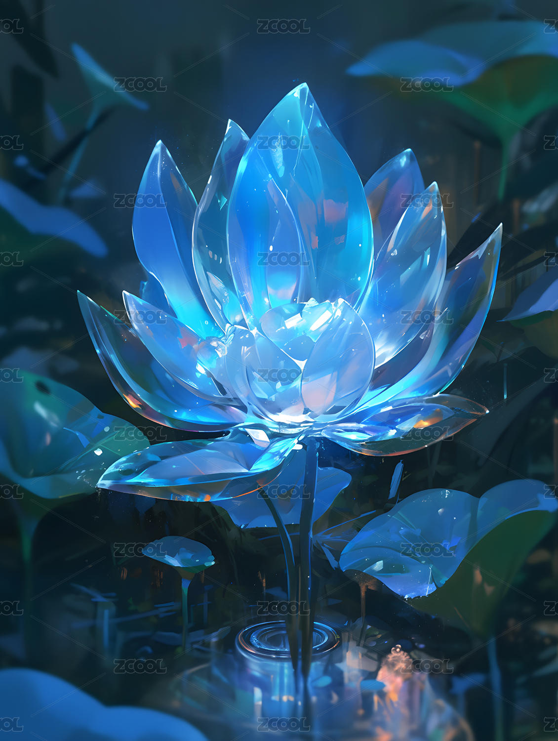 黑底奇幻玄幻游戏原画宝石花朵3D立体插画
