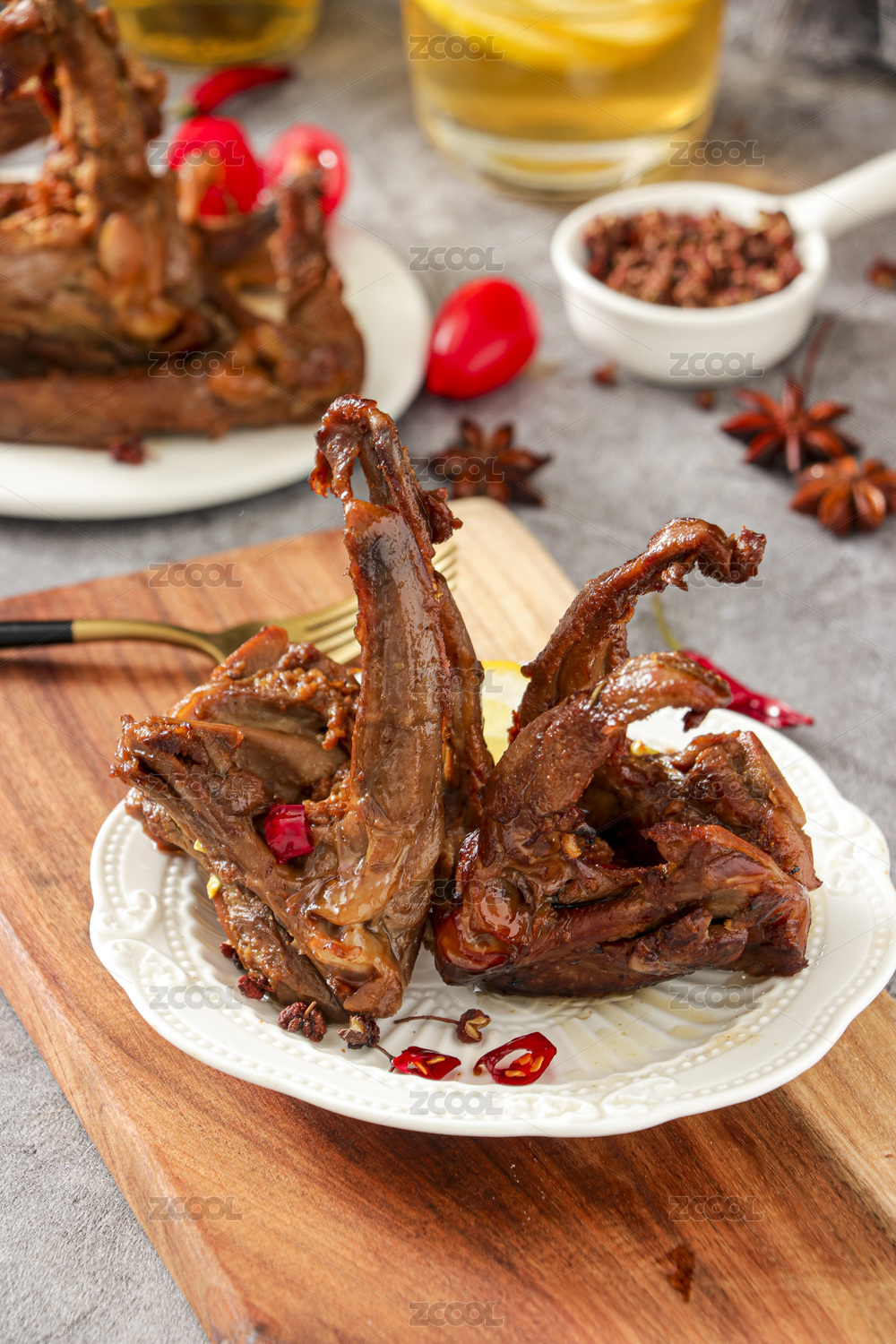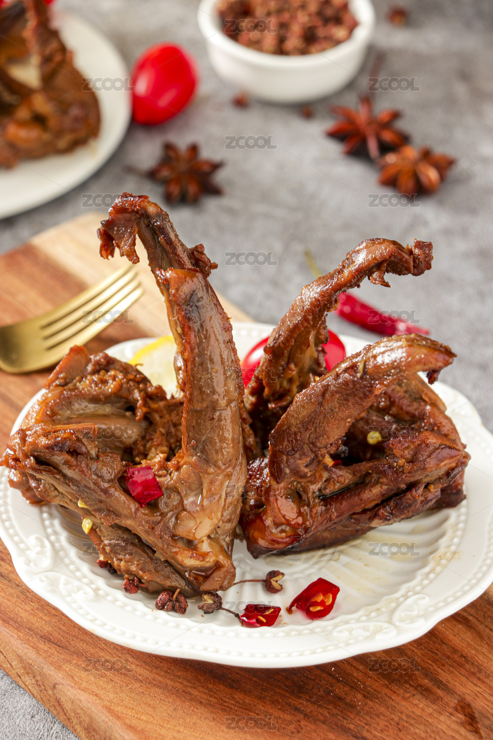 盘子放着香辣鸭锁骨卤味