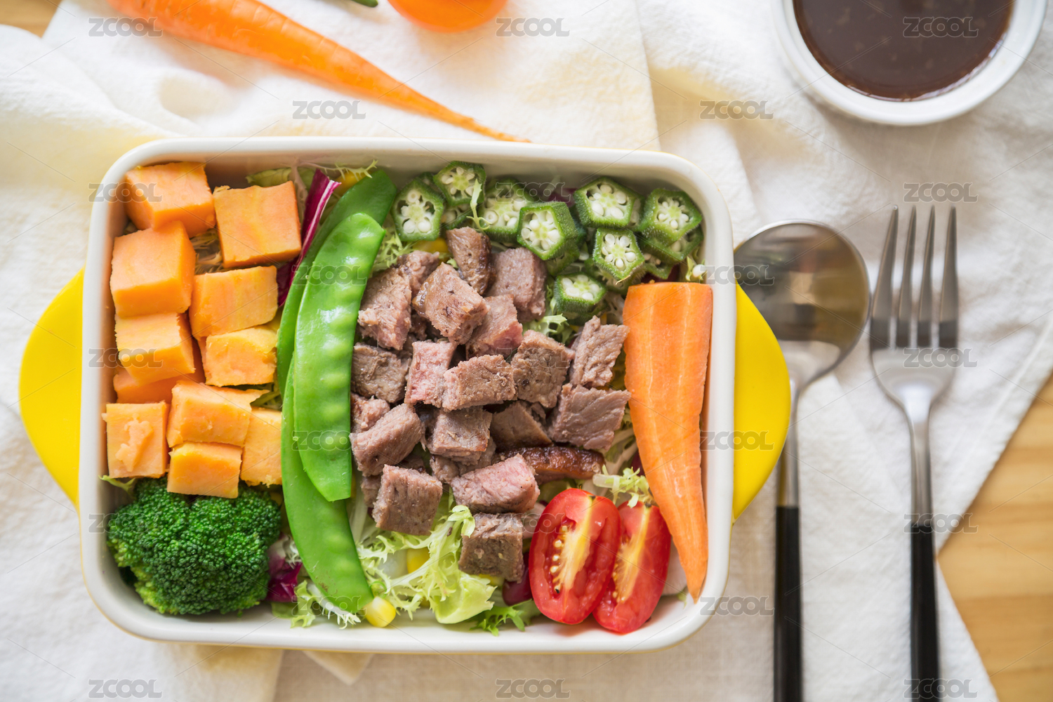 牛肉沙拉,牛肉块,牛肉粒,甜豌豆,荷兰豆,秋葵,沙律,沙拉酱,轻食,料理