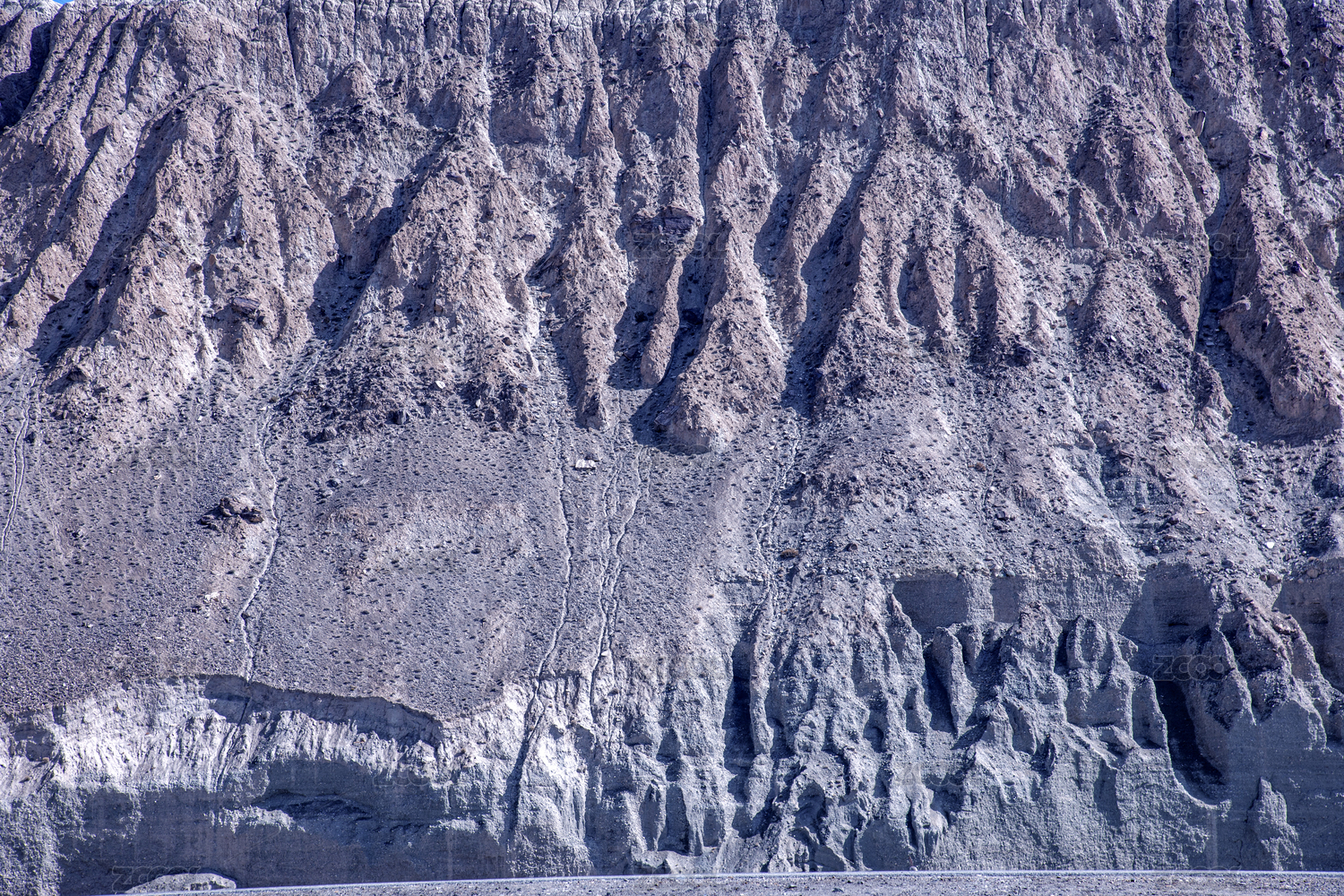 中国新疆帕米尔高原河谷边坡上的沟堑