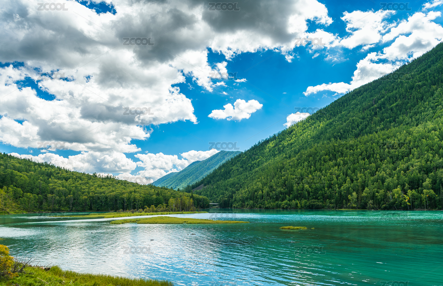 新疆,喀纳斯湖,阿勒泰,湖泊,水,群山,高山湖泊,冰碛堰塞湖,白昼,白天