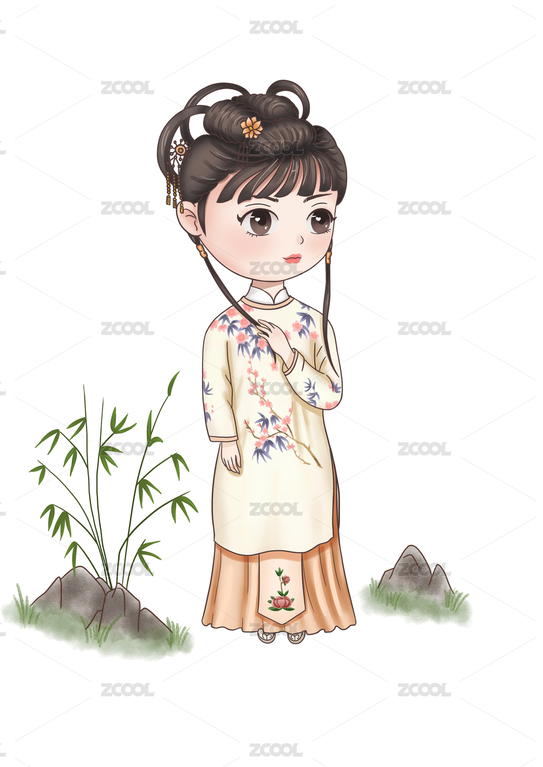 古风卡通女孩人物插画