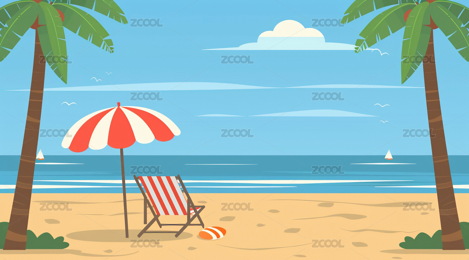 夏天,背景,海边,度假,海滩,海洋,夏季,椰子树,插画,卡通