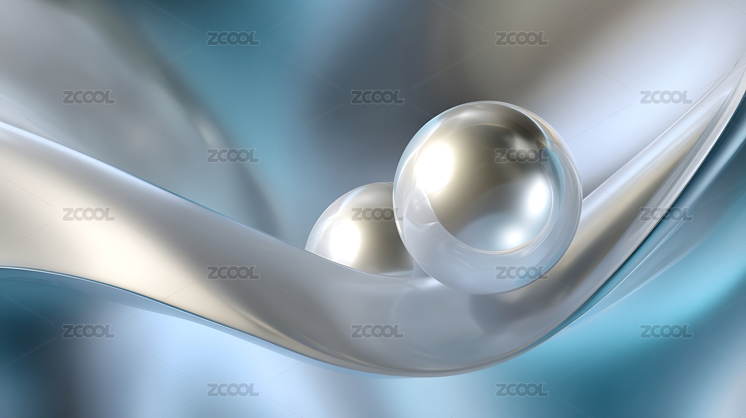 银色球体与柔和曲面