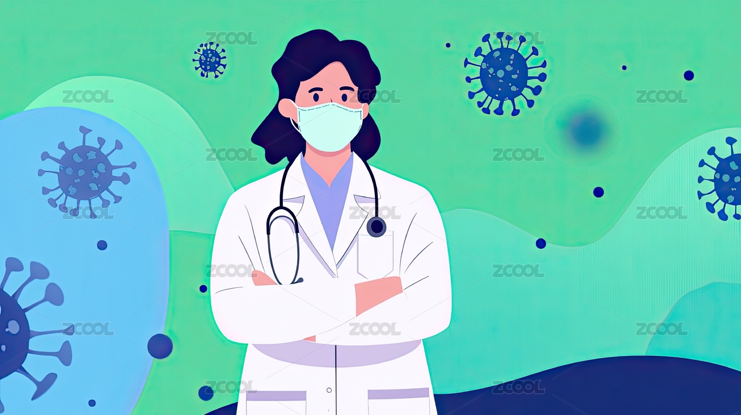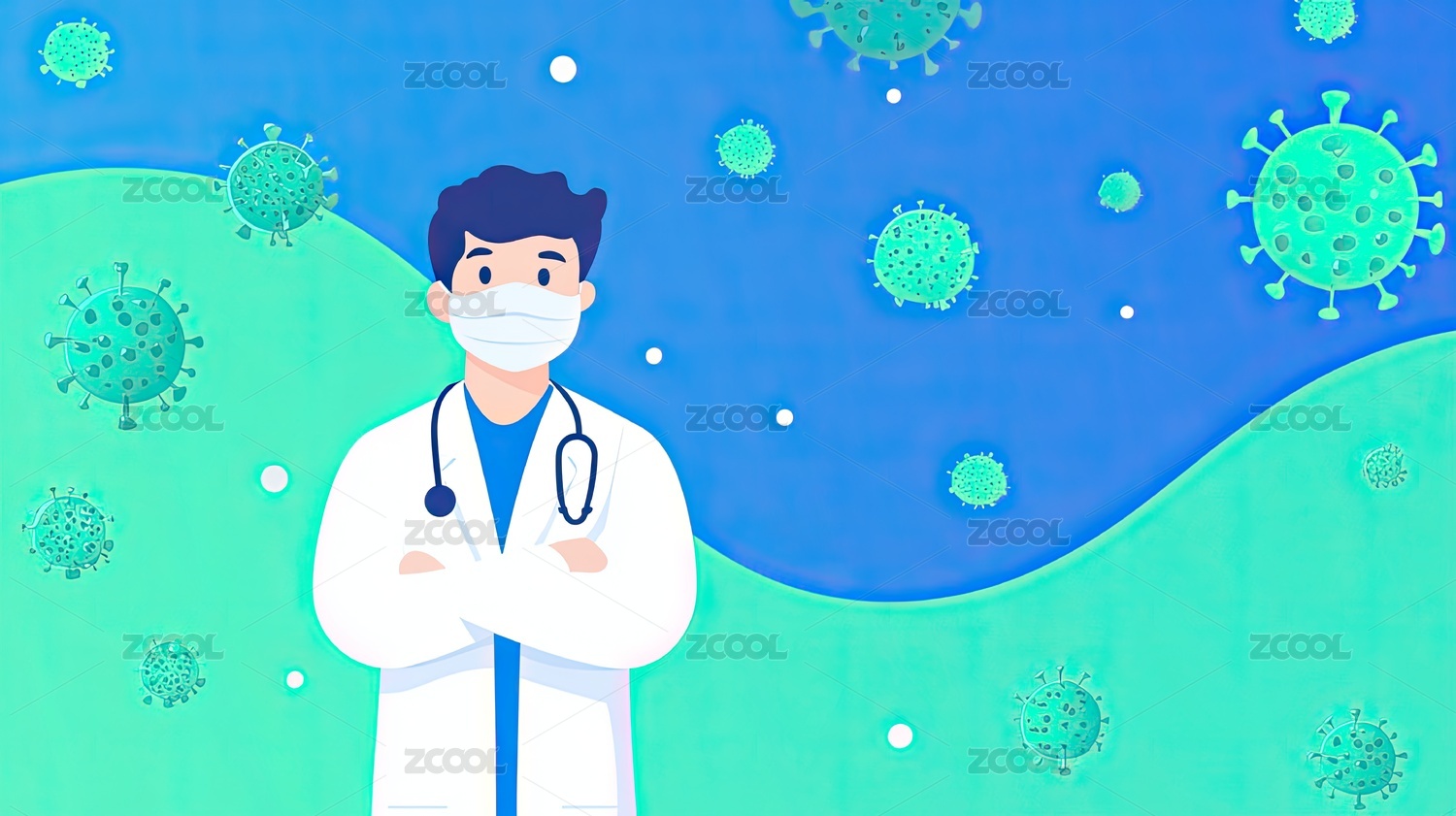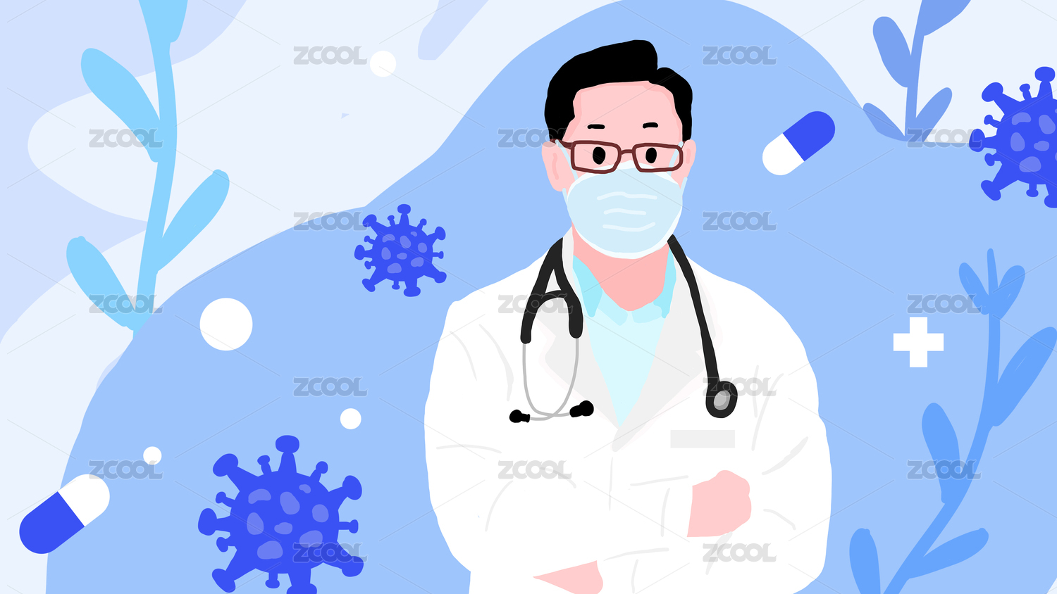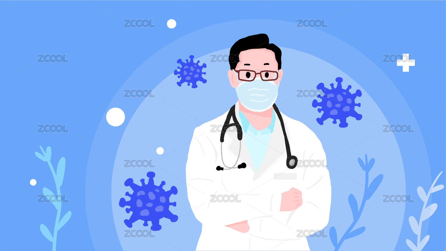 戴口罩,HEMEDI2020,病毒,简约,扁平,科技,蓝色,植物,互联网,插图