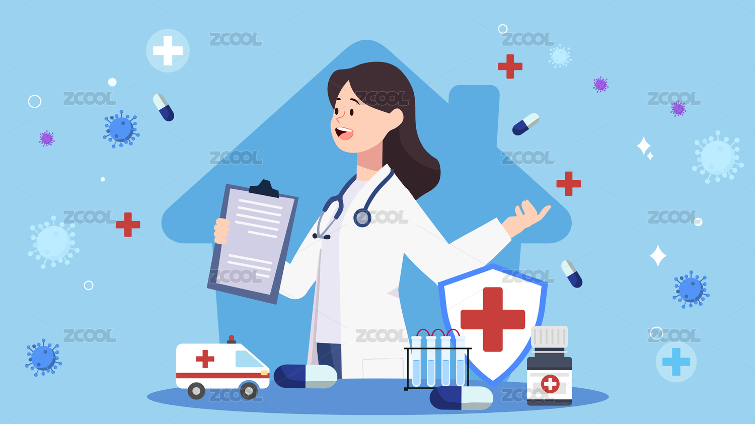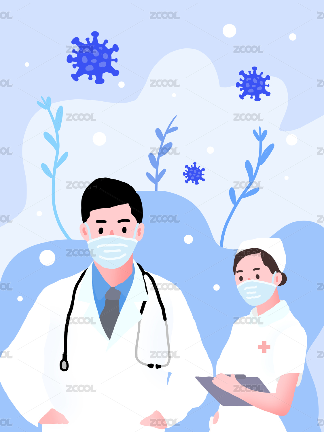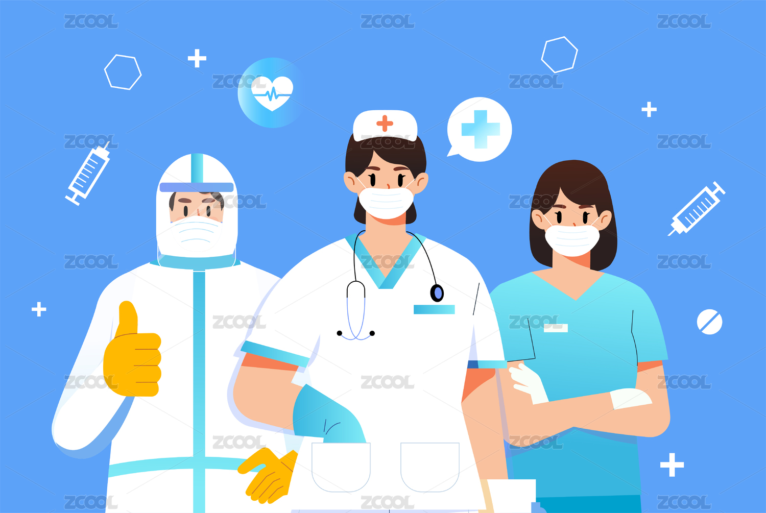 医生和护士抗击病毒疫情医疗健康矢量插画