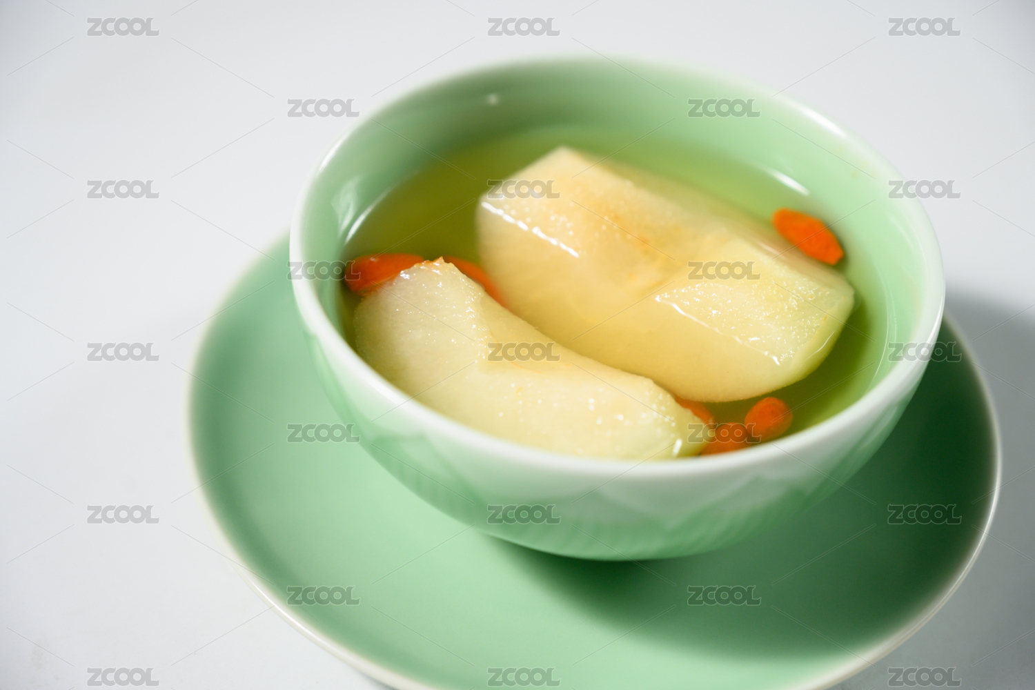 桌面上的碗里的美味可口的冰糖炖雪梨