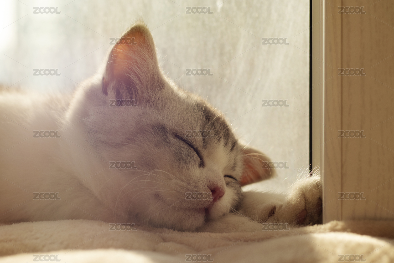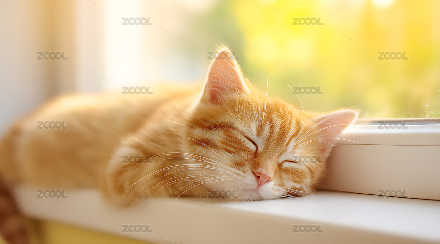 一只小猫趴在窗边睡觉