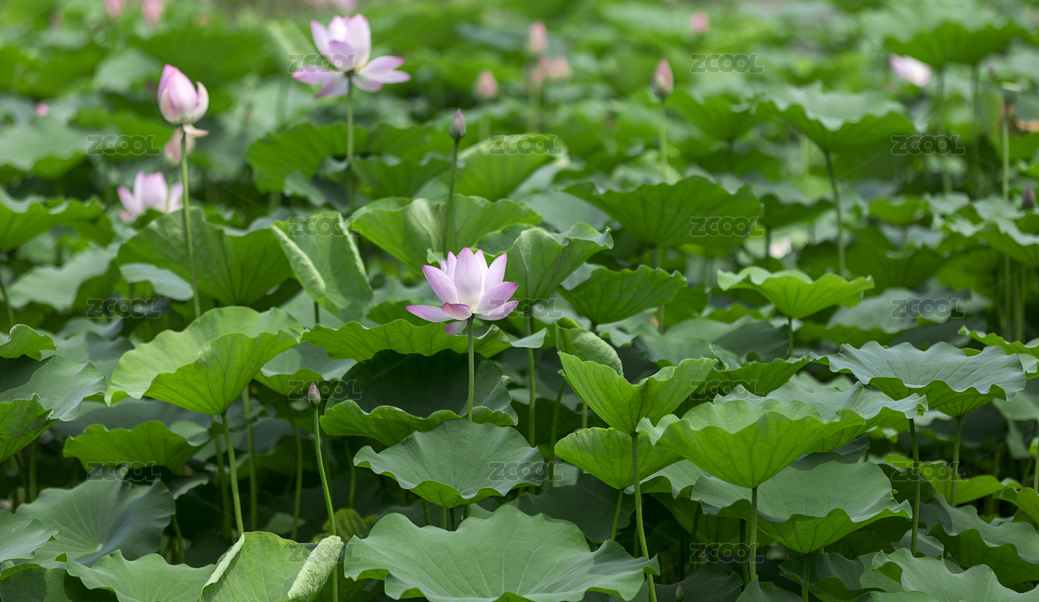池塘中生长茂盛的荷叶莲花