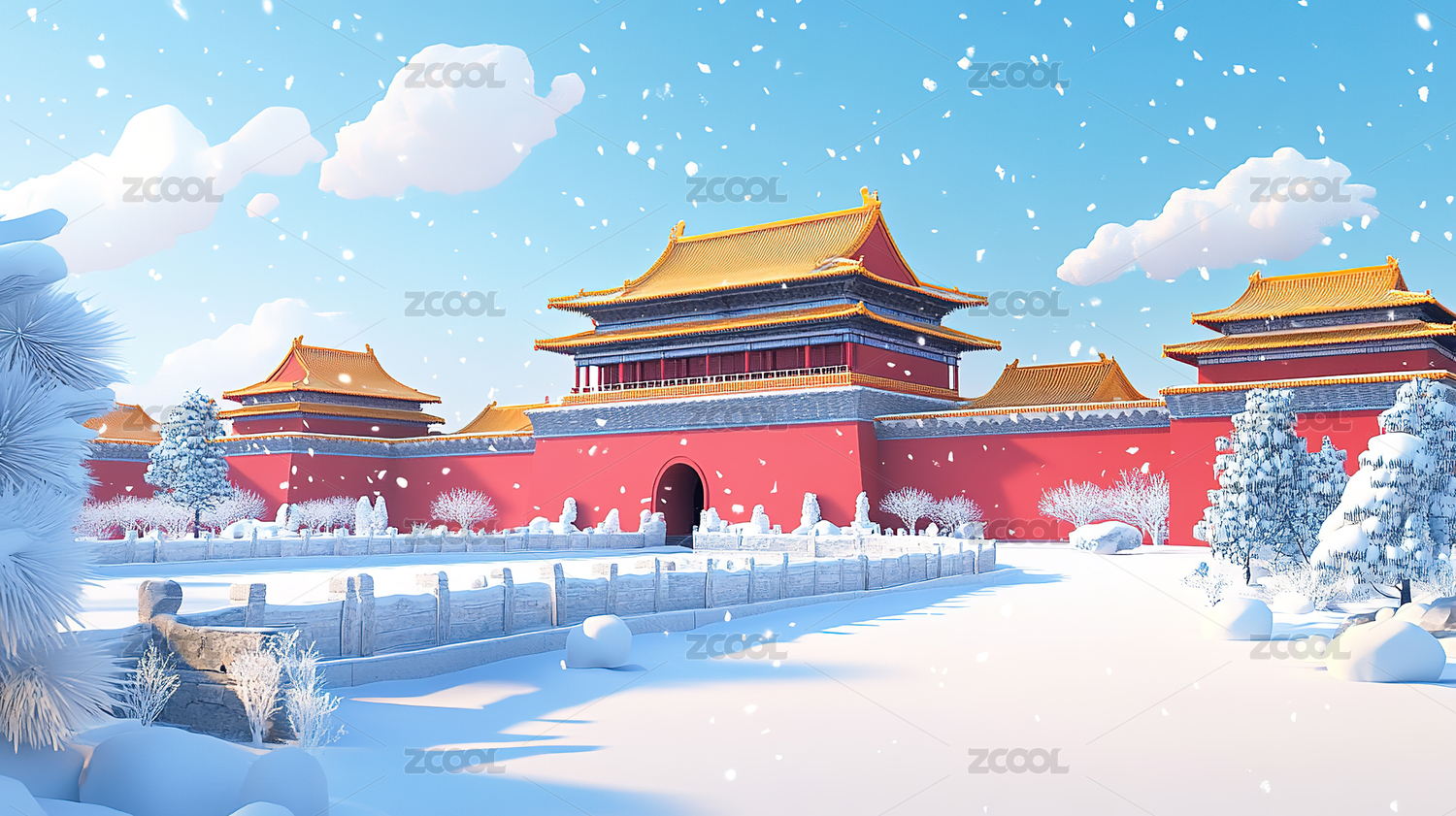 古建筑,宫殿,无人,著名景点,建筑,下雪,雪,正面,对称,冬天