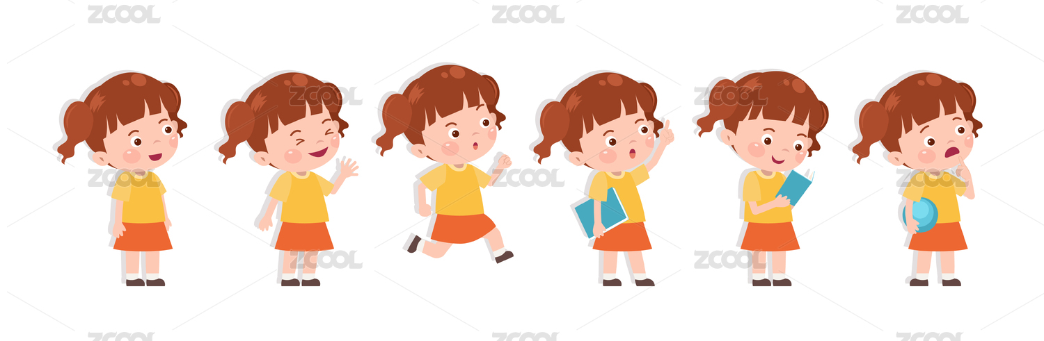 女孩,开心,学生,上学,小学生,书包,矢量图,动态,小女孩,设定