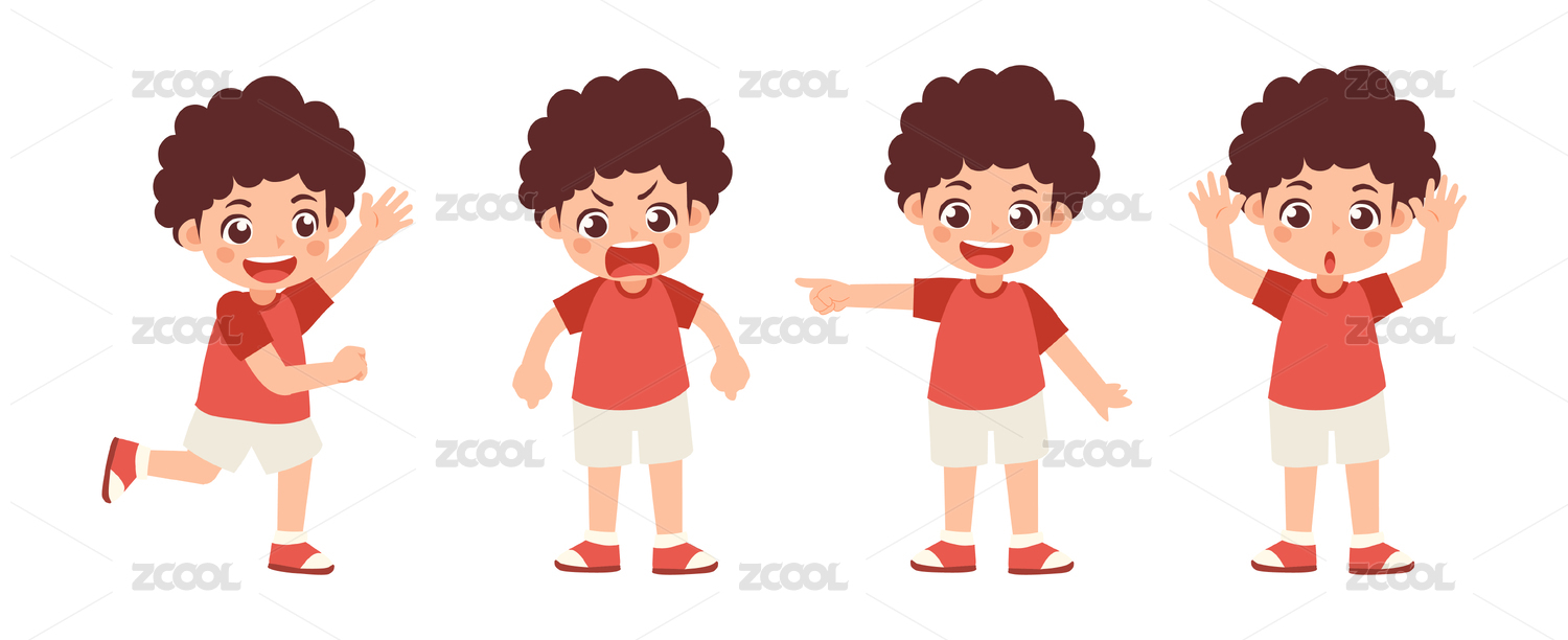 穿蓝白短袖运动服的可爱小孩扁平矢