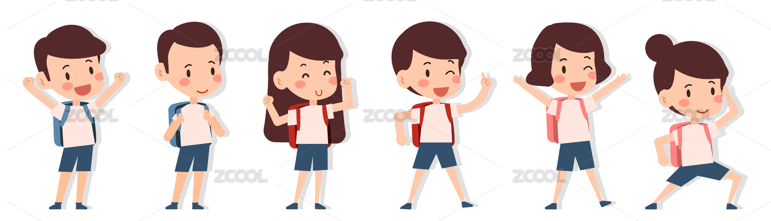 Dynamic Cartoon Vector Map of Lovely Girls in Backpacks背书包可爱女孩动态卡通矢量图