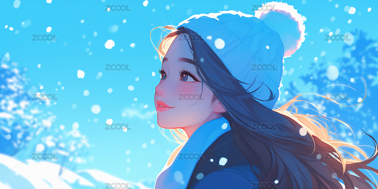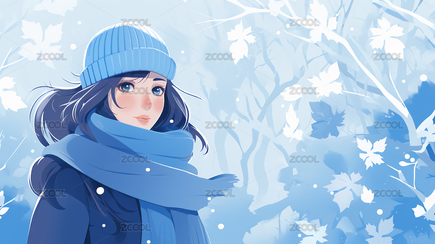 女孩,插画,雪,冬天,大雪,寒冷,小雪,大寒,小寒,雪人