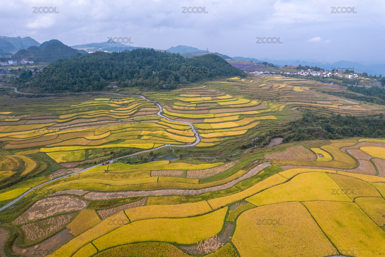 金灿灿的稻子给山乡田野铺上金色的地毯