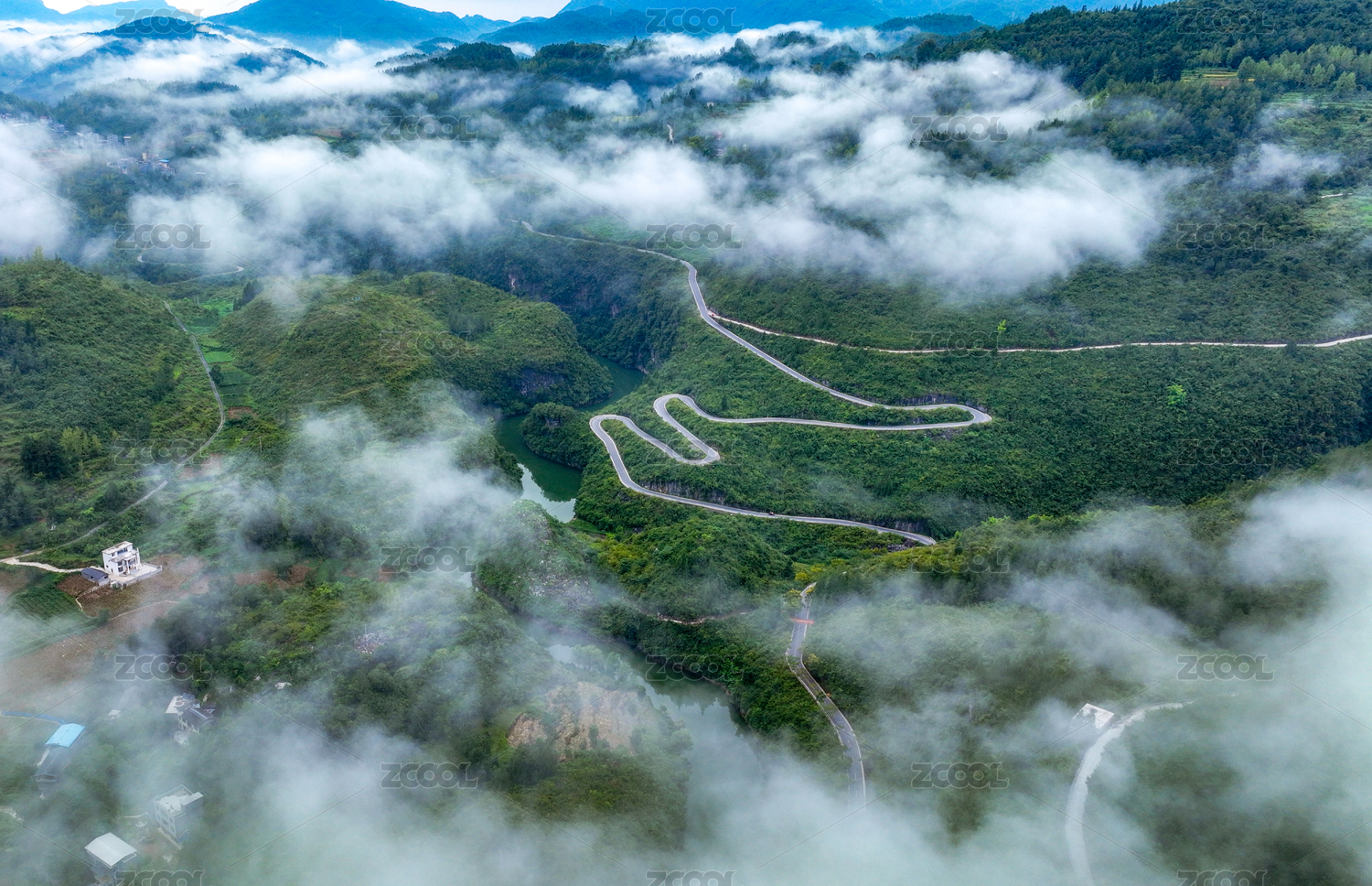 云雾袅绕乡村美