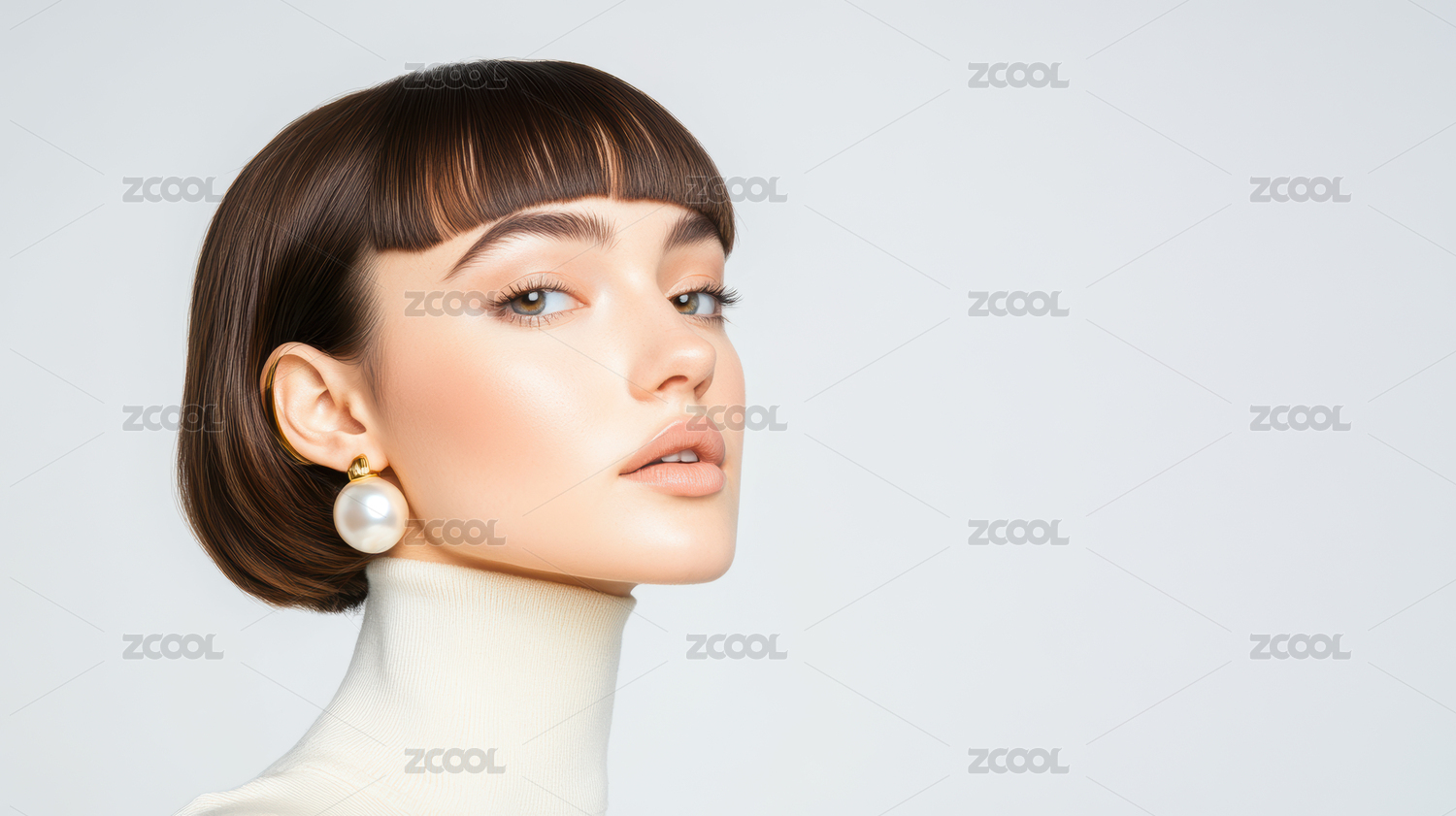 肖像,人像,外国人,DXCZ202406,光影,优雅,女性,耳环,短发,时尚