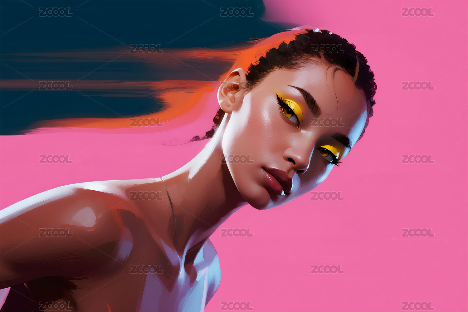 现代极简时尚人像赛博朋克超现实色彩搭配