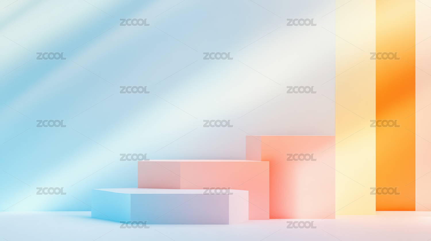 几何形状,未来主义,科技感,产品展示,现代设计,展示平台,3D渲染,抽象背景,柔和色彩,渐变色