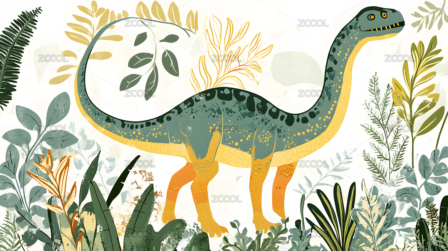 数码水彩幼儿风格恐龙图案装饰抽象图形海报