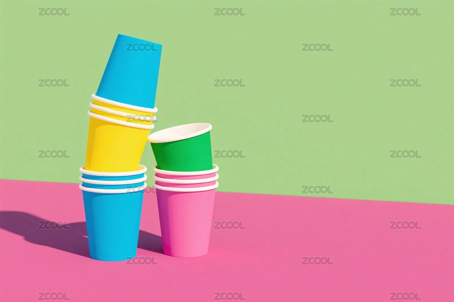 设计,简约,橙色,粉色,绿色,蓝色背景,创意,彩色,堆叠,塑料杯