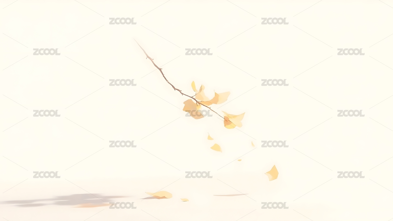 黄色落叶映衬白色背景