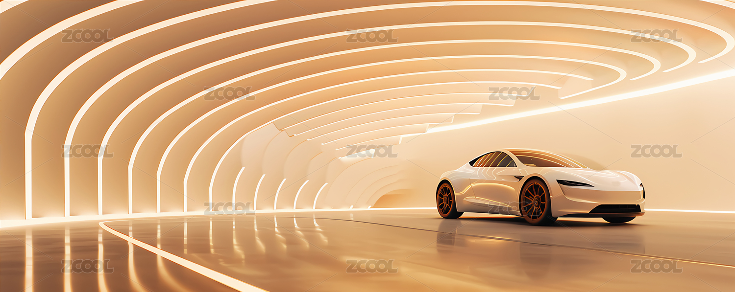 未来概念车在光影隧道中