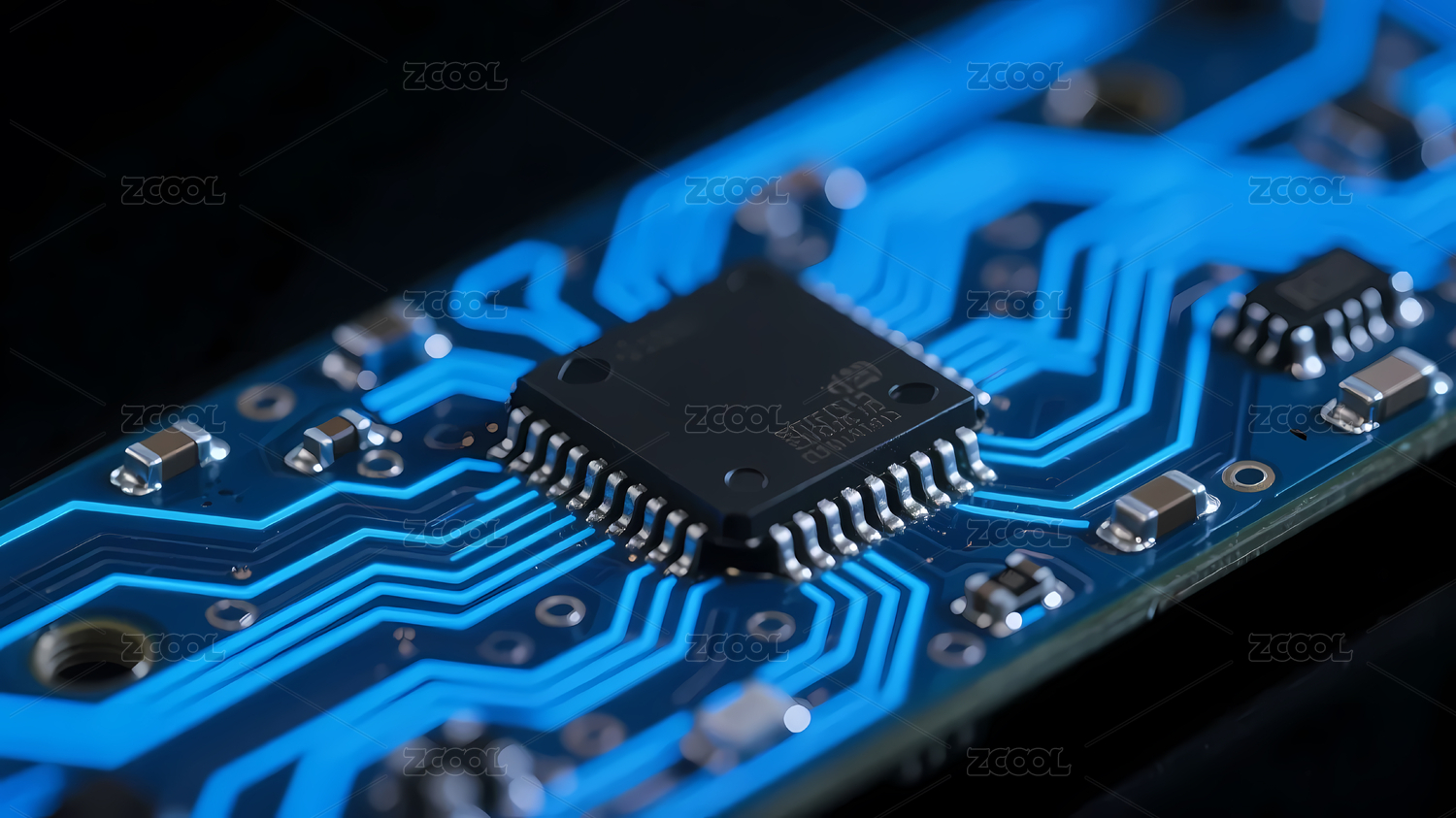 蓝色电路黑芯片板