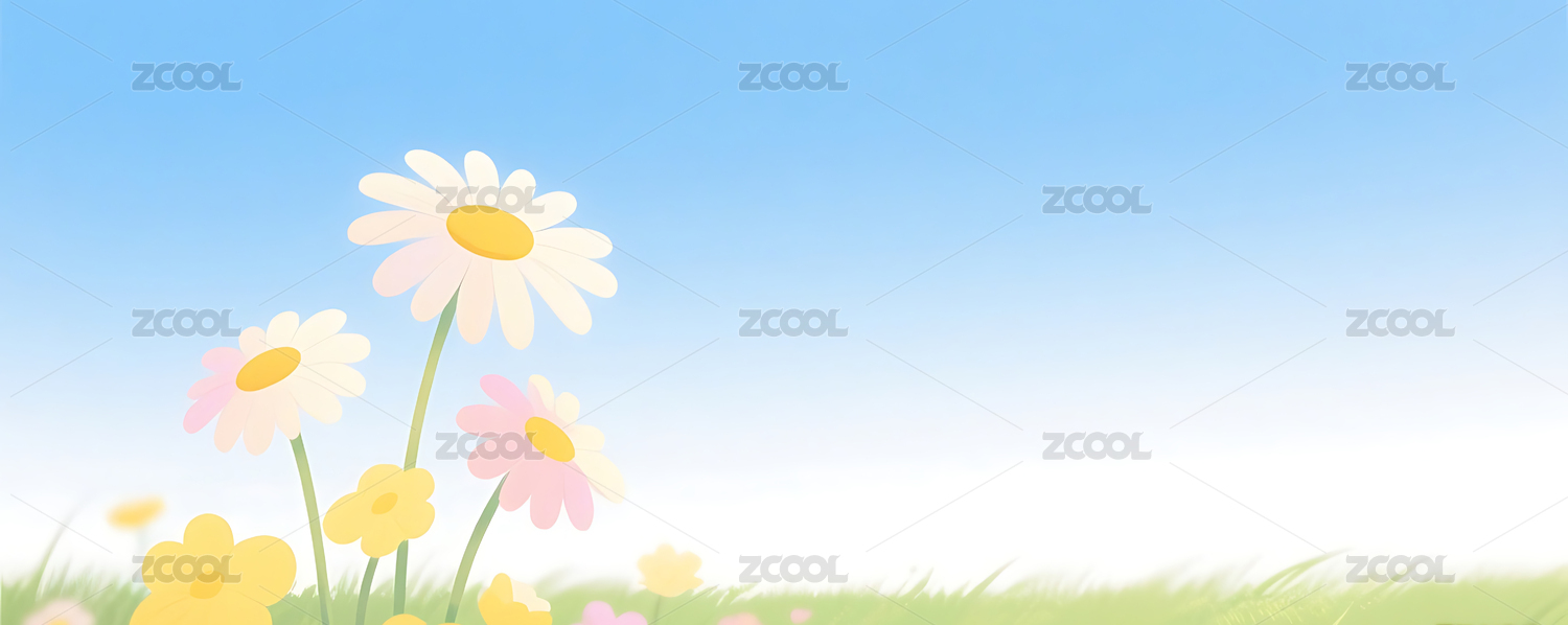 简约花朵草地插画背景