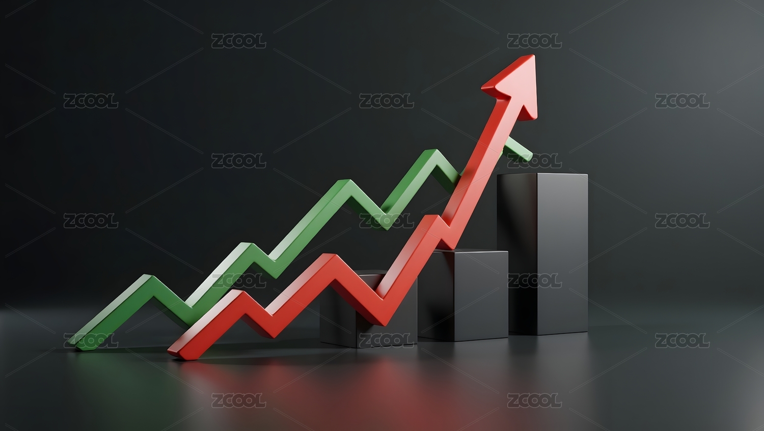 透明玻璃柱状图与绿色箭头