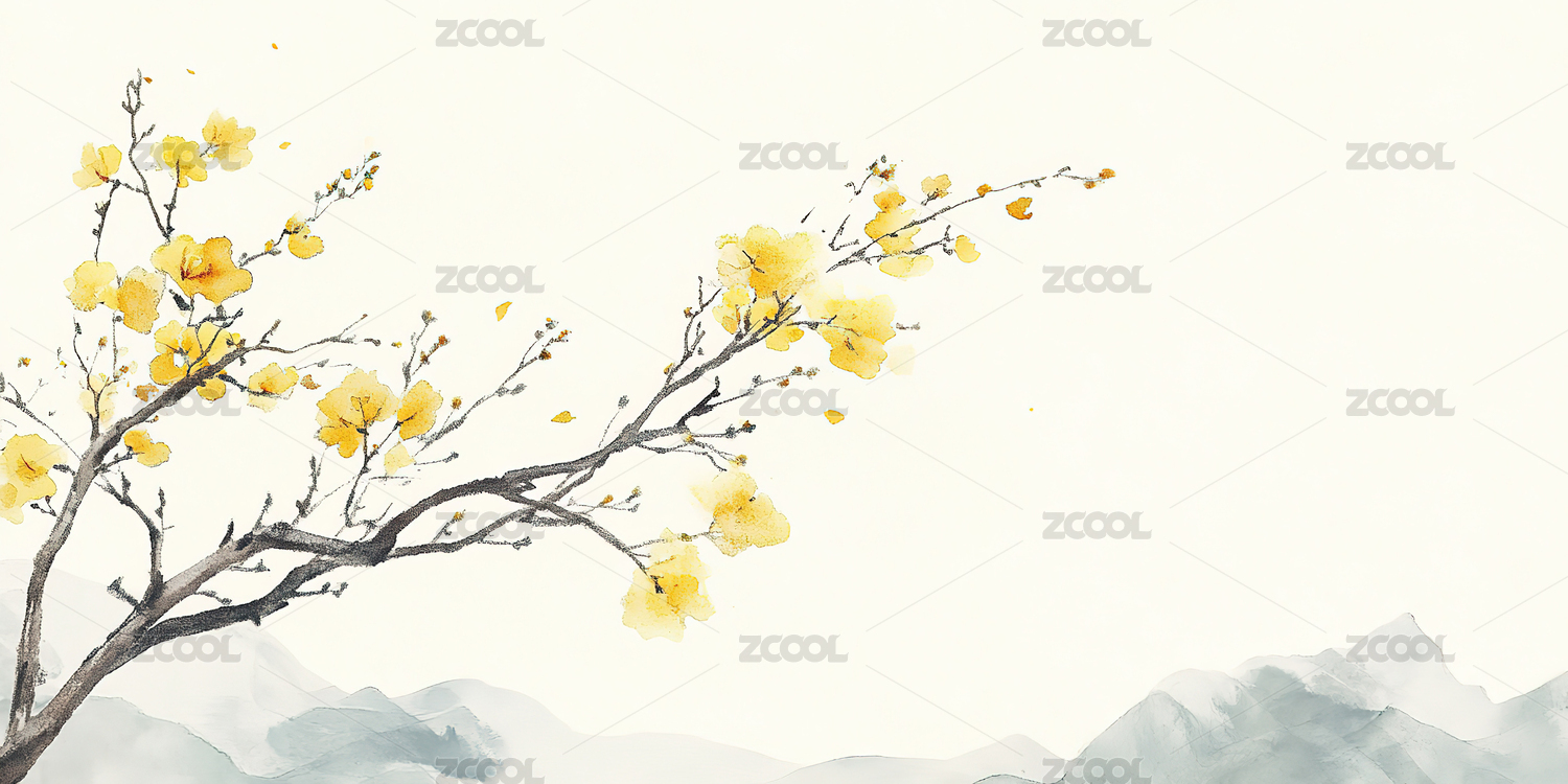 中国风抽象艺术中国传统迎春花山水诗意画