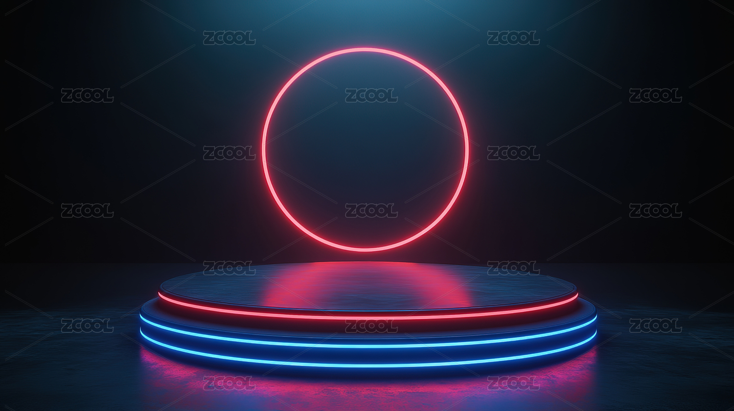 蓝色光环与粉色背景的炫酷舞台