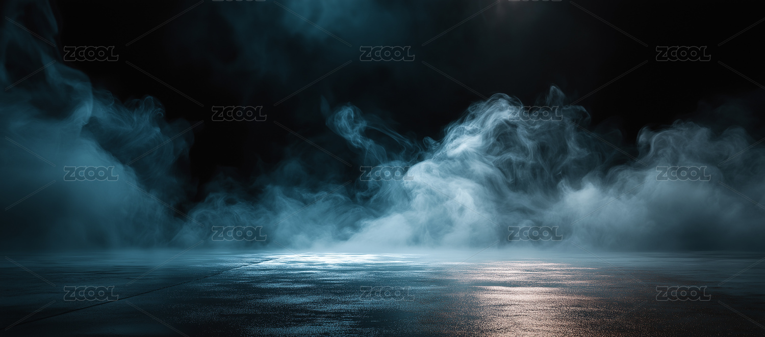 黑暗场景中地面有烟雾弥漫 光影交织营造氛