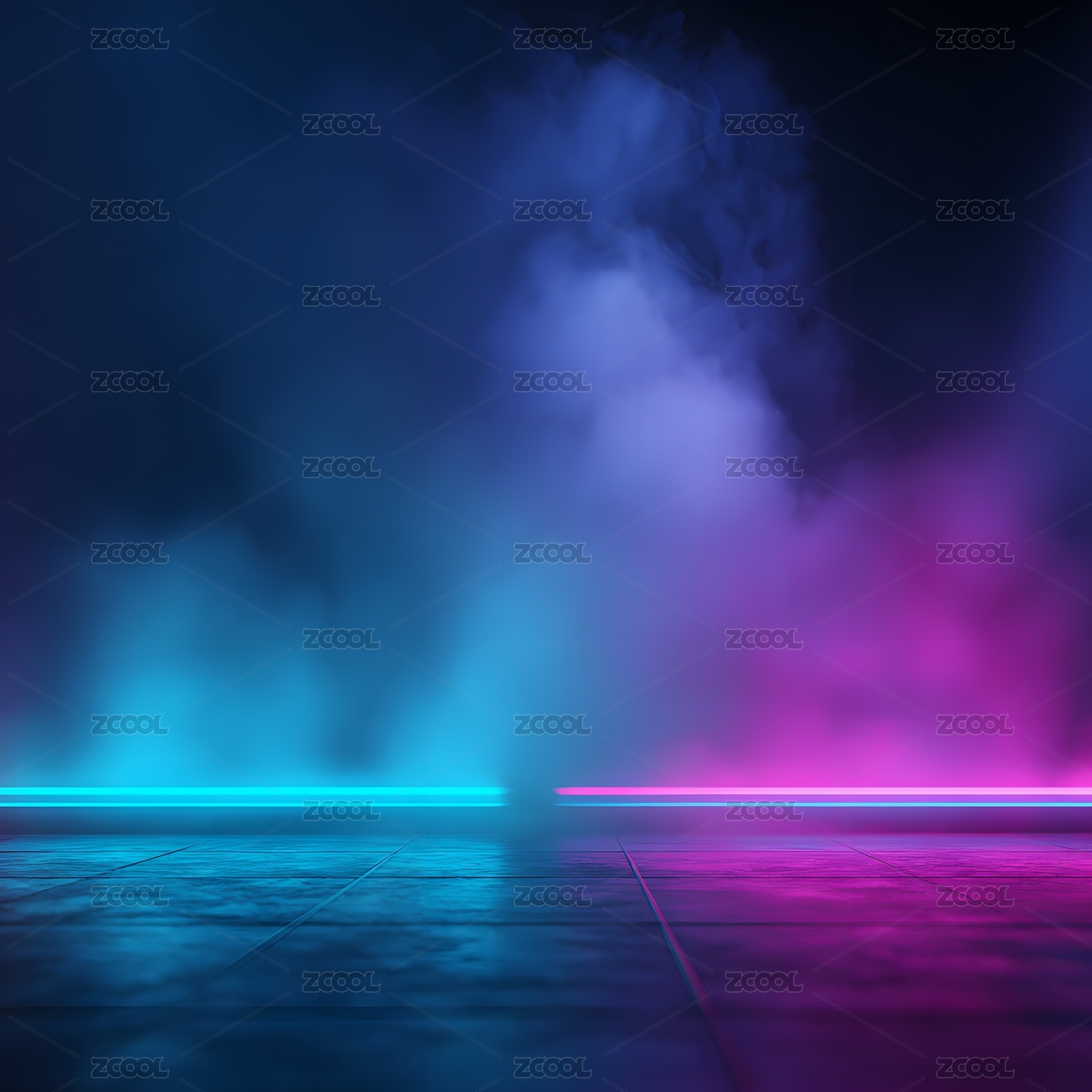 蓝粉霓虹灯光舞台烟雾背景素材图片