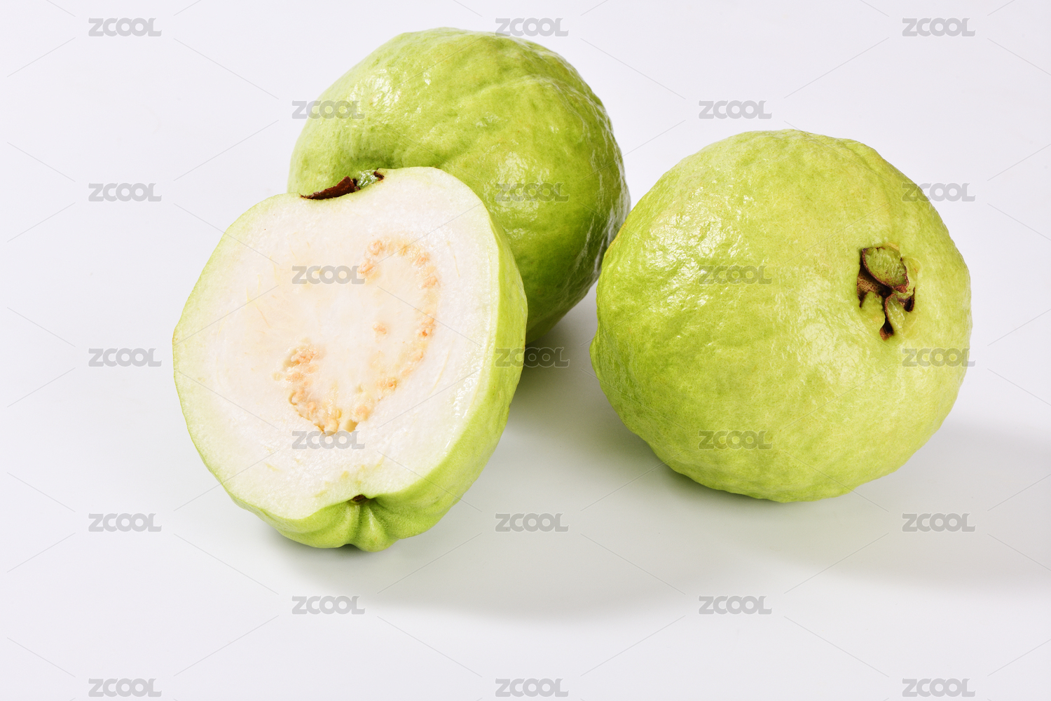 白色背景上新鲜美味的切开的旱梨和完整的旱梨