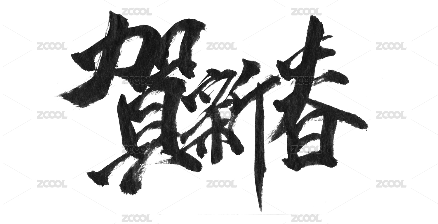 白色背景的毛笔字体春节字体