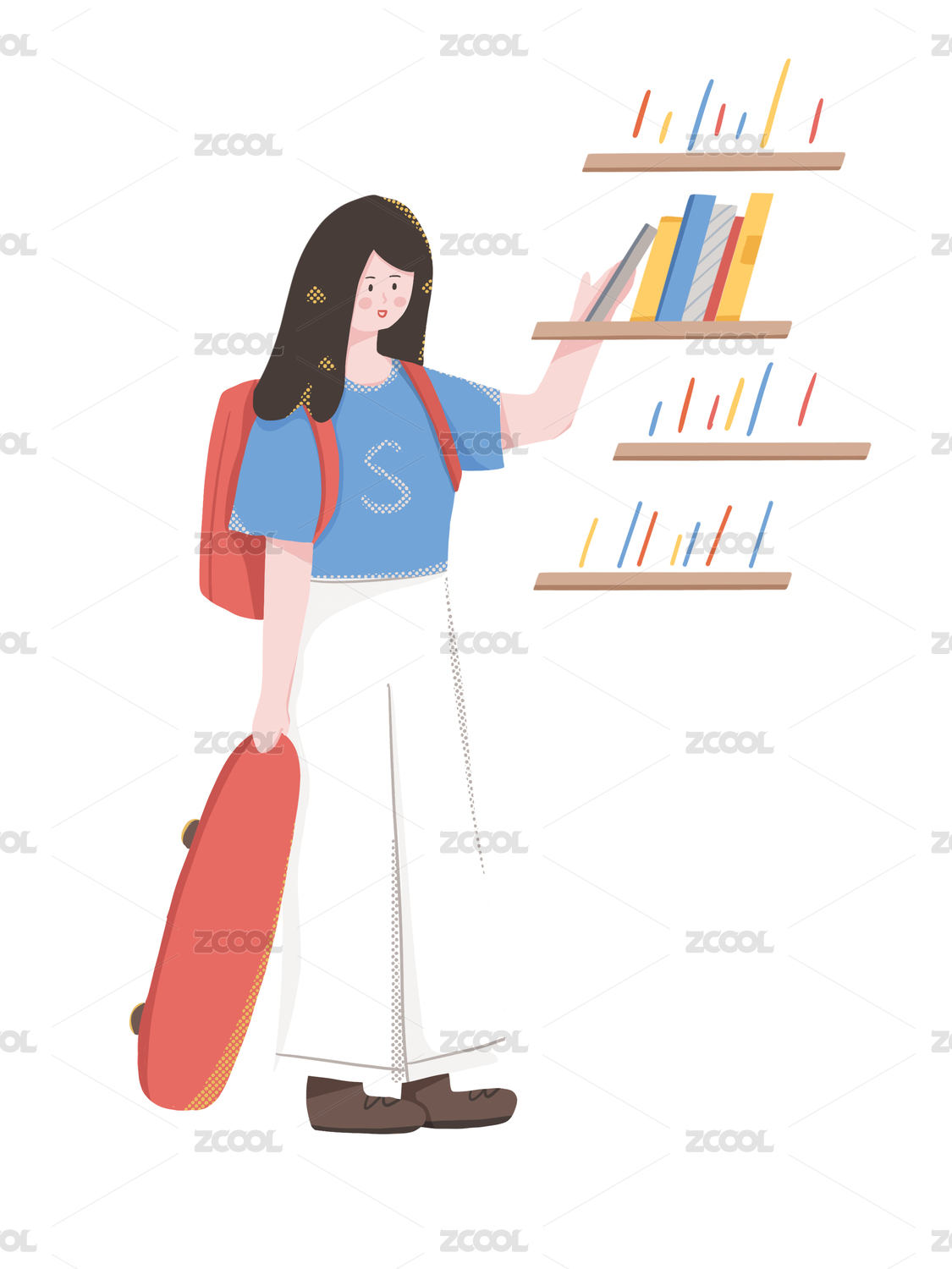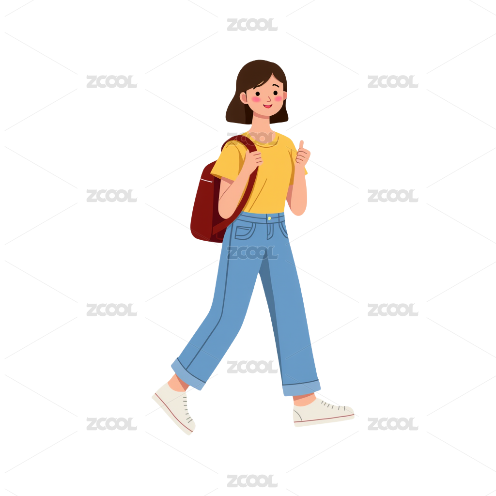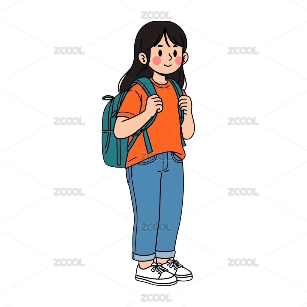 扁平风,女生,女性,人物,插画,扁平化,卡通,站姿,站立,书包