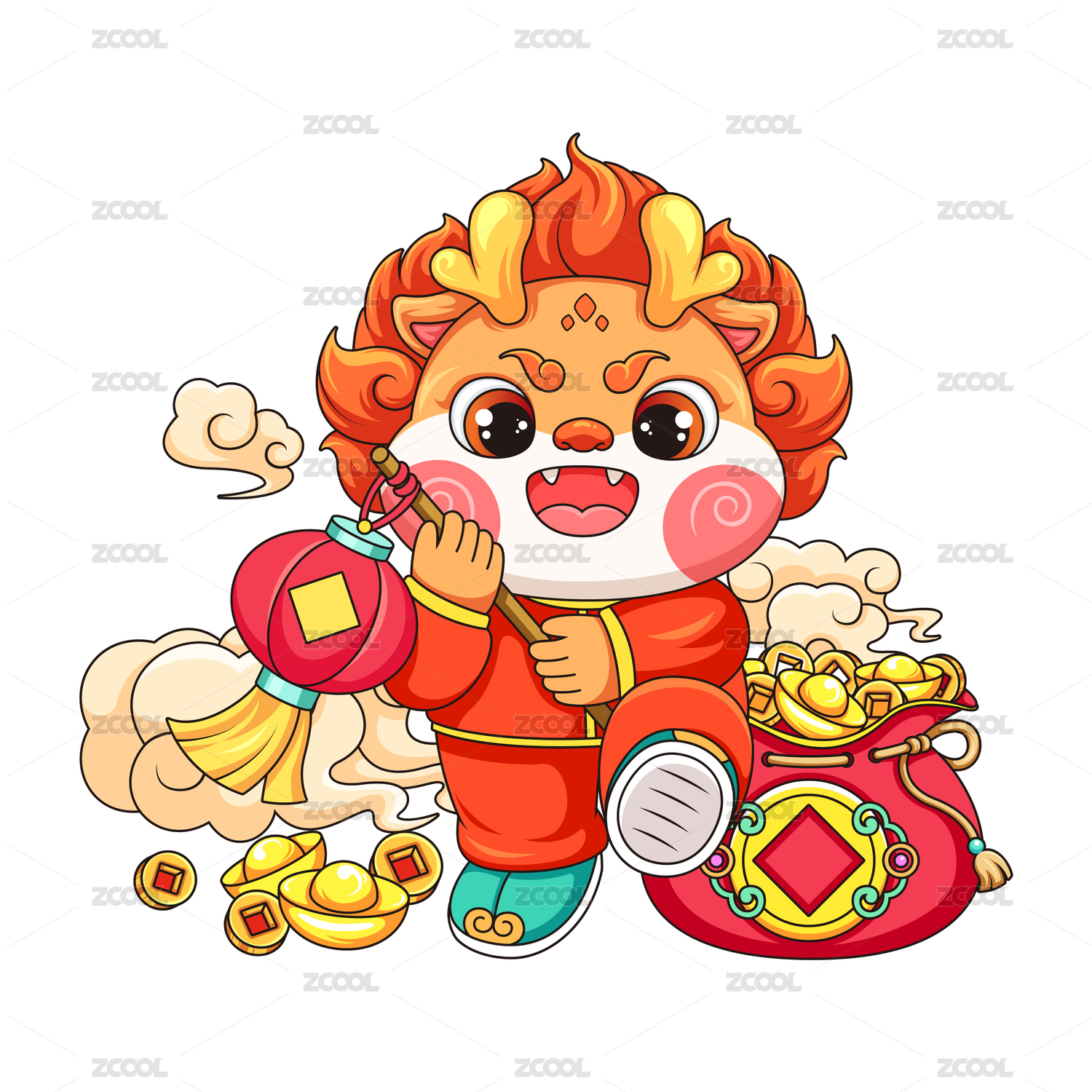 龙年,新年,插画,卡通,可爱,春节,拜年,喜庆,祝福,节日