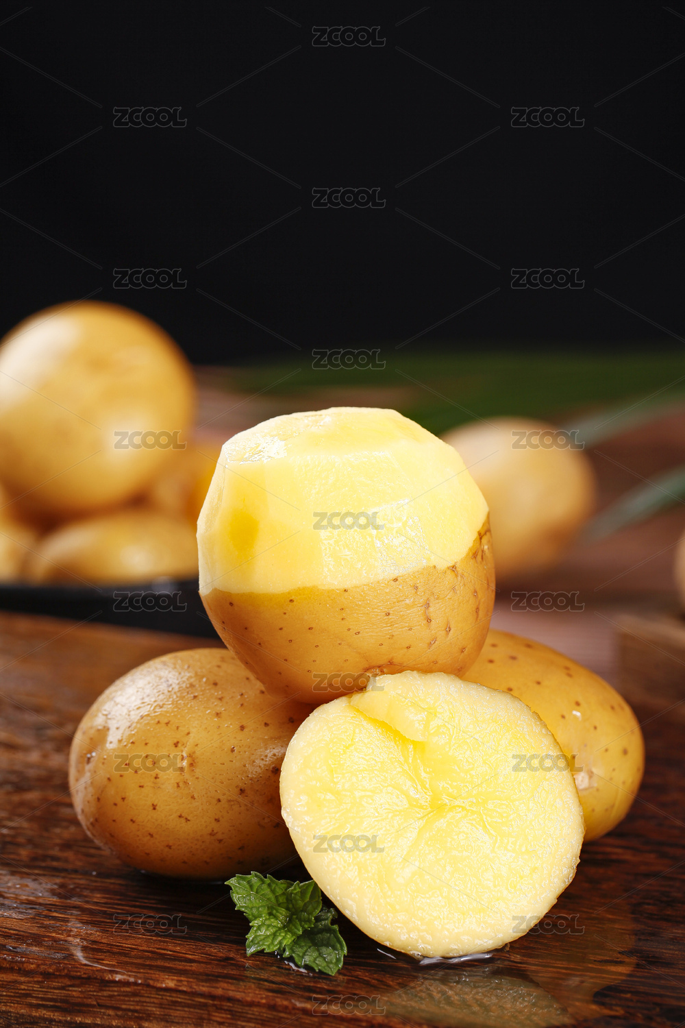 深底上放着一个威宁小土豆和一个削皮的土豆