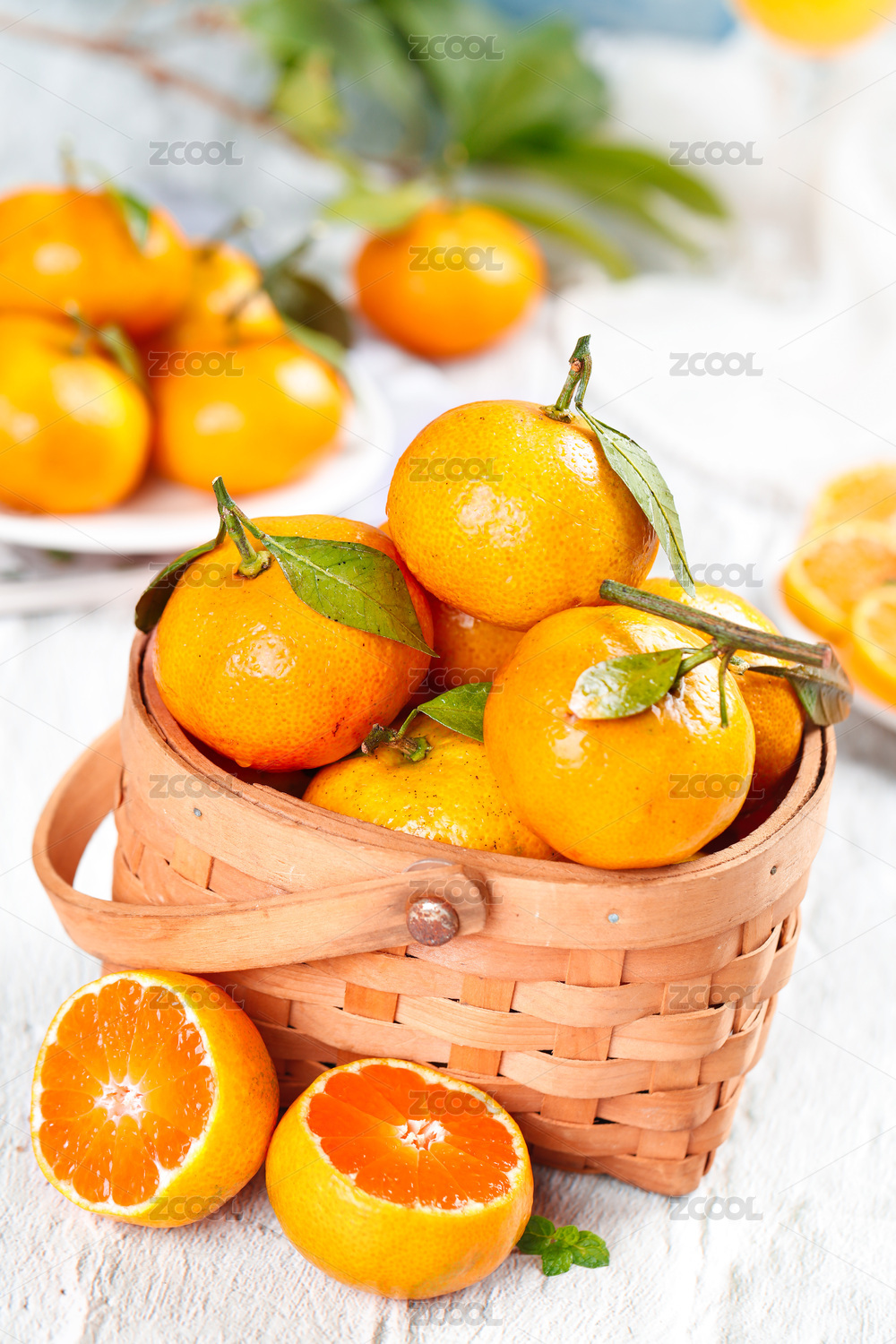 木底上放着红橘和红橘切面