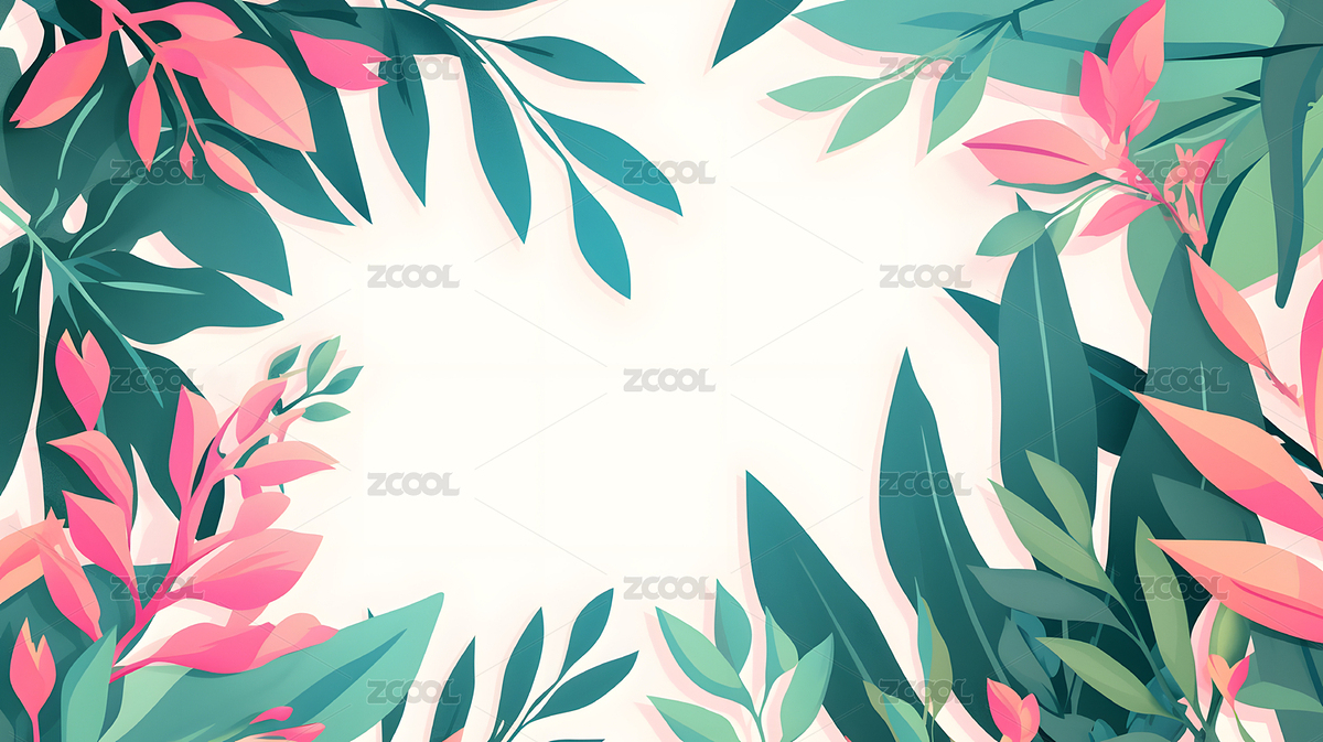 抽象花卉绿色叶子和橙色油漆飞溅背景