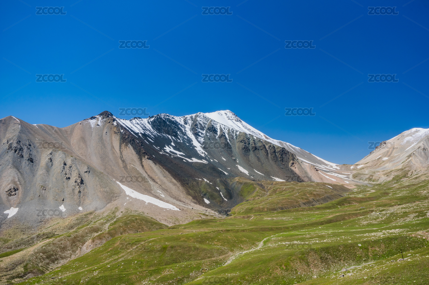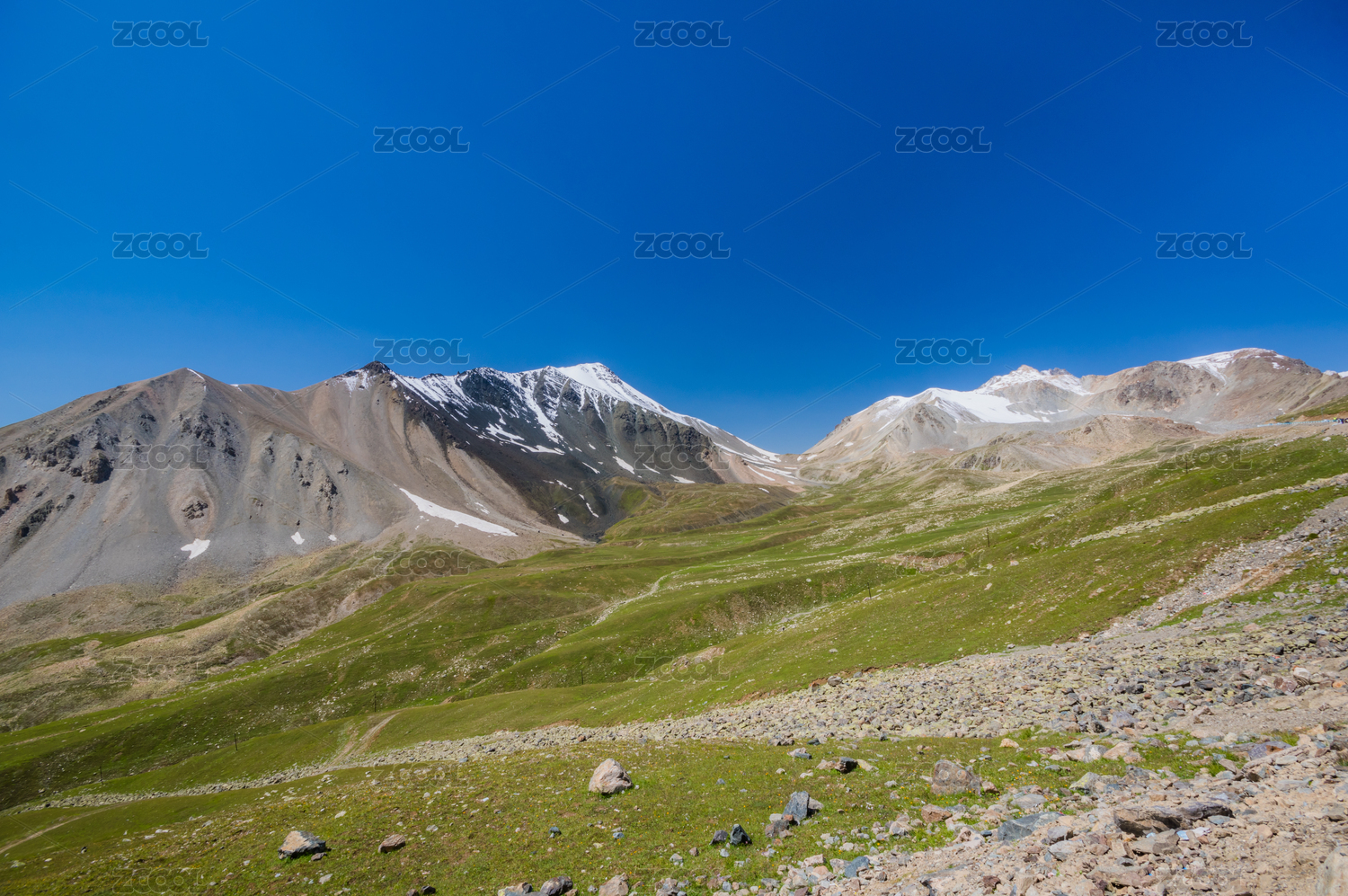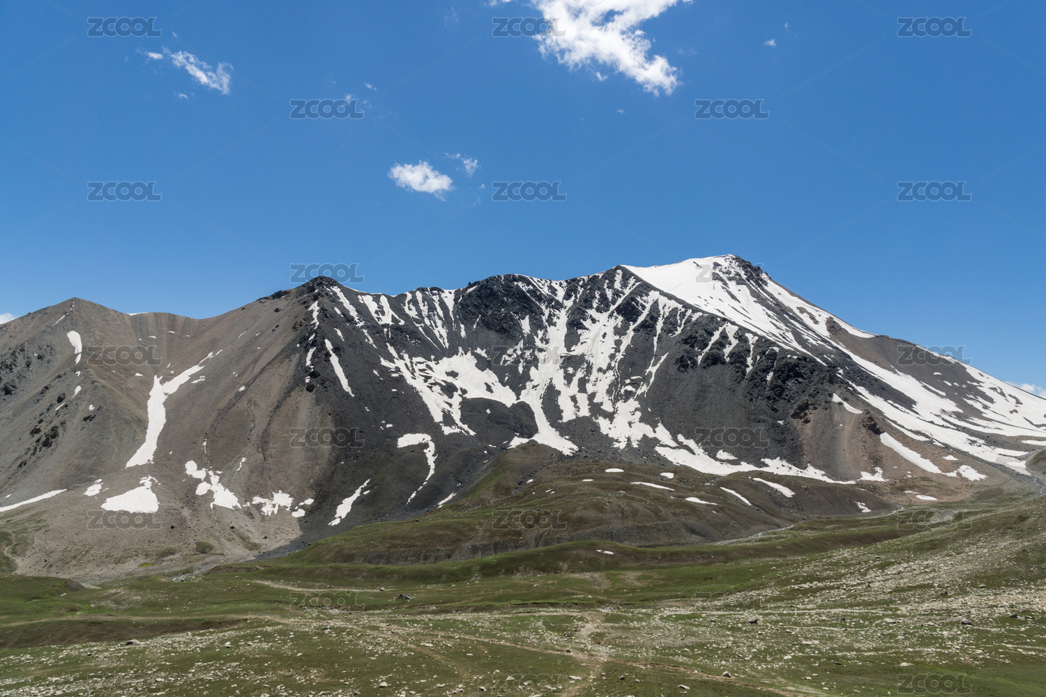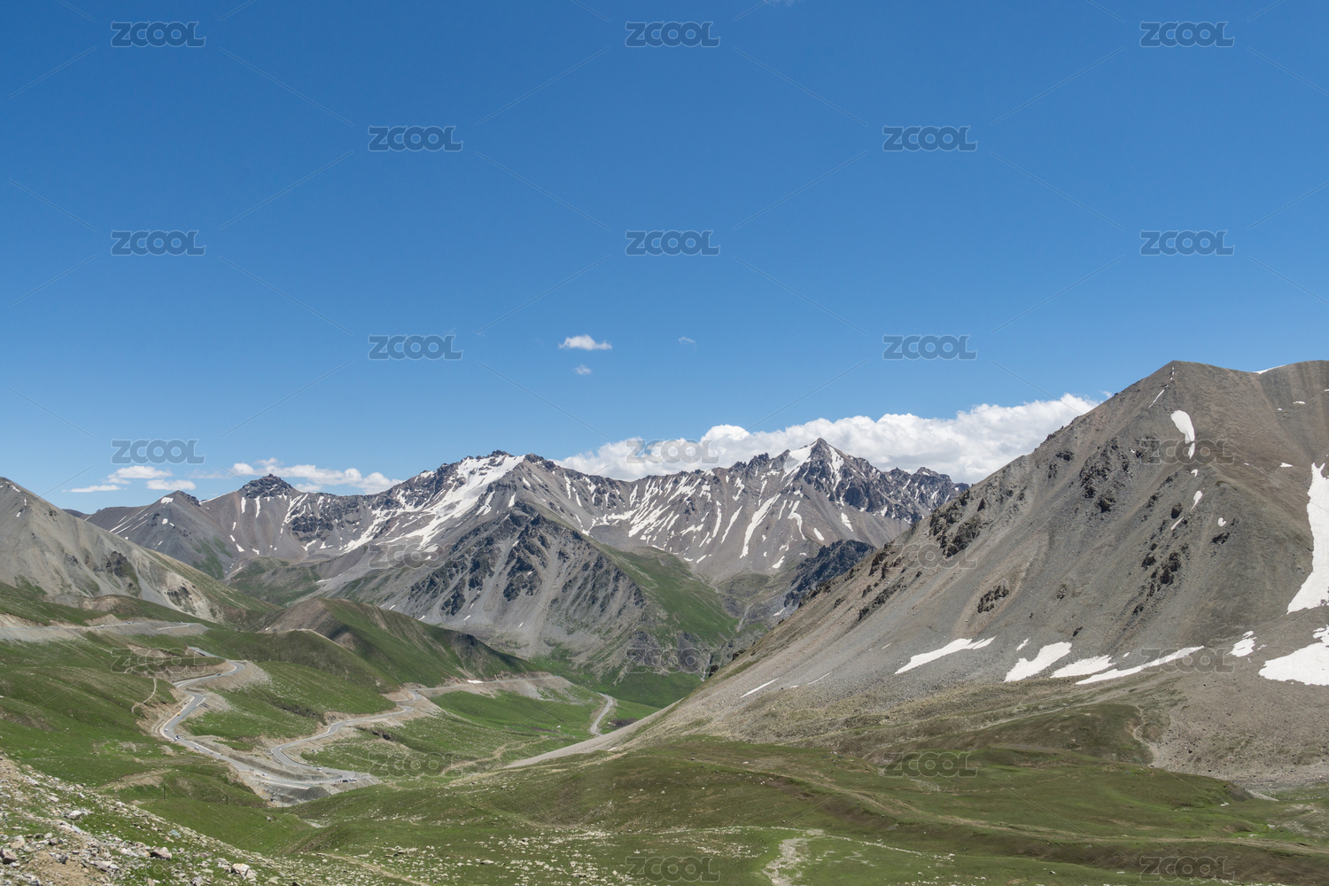 中国新疆夏季蓝天白云下G217独库公路沿途高山草原