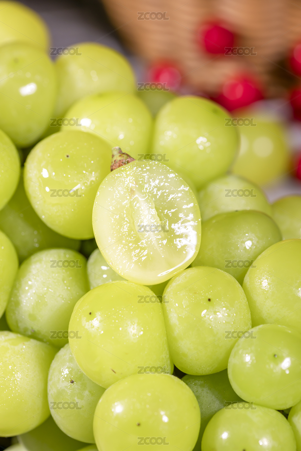 白底上带水珠新鲜的阳光玫瑰葡萄